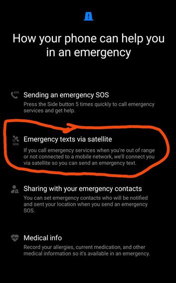 ارتباط ماهوارهای یک قابلیت اضطراری محسوب میشود که به کاربران اجازه میدهد زمانهایی که به هر دلیلی در مناطق دور افتاده مثل کوه و… آنتن گوشی آنها صفر شد، بتوانند با ارتباط به یک سری ماهوارهی خاص در اطراف زمین، با مراکز اورژانس ارتباط برقرار کرده و از آنها درخواست کمک کنند.