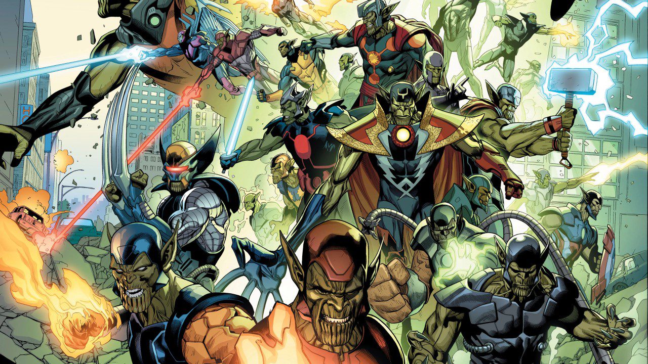 در همین سکانس فیوری در جواب به سوال رودز که میپرسد “چرا از انتقام جویان کمک نمیگیری؟”، توضیح میدهد که اگر انتقام جویان درگیر این ماجرا بشوند، هویت و نامشان برای همیشه نابود خواهد شد، چون اسکرولها میتوانند با با قابلیت تغییر چهره خود، آنها را به تروریست تبدیل کنند. این جمله ایستراگی است از مجموعه کمیک تهاجم مخفی که در آن هویت بسیاری از قدرتمندترین قهرمانان زمین توسط اسکرولها دزدیده شد.