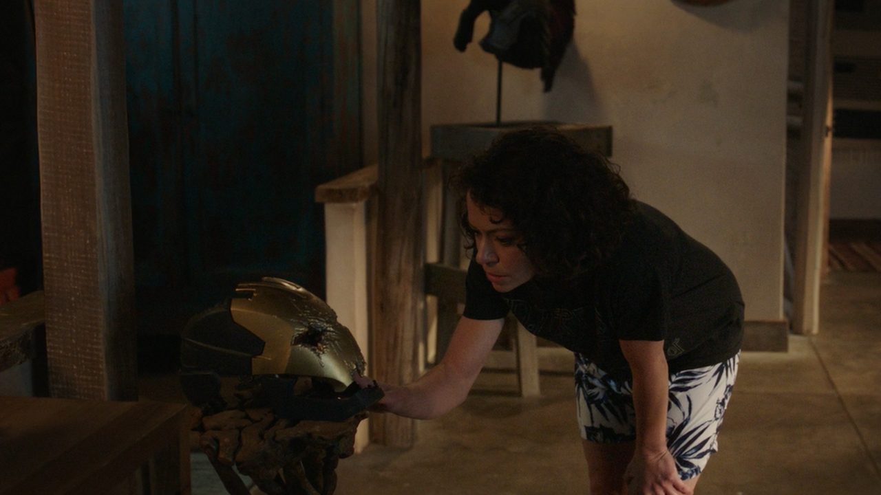 در سریال شی هالک یکی از مواردی که در قسمت اول به بیشترین حد به آن اشاره میشود، این است که استارک محیط خاصی را برای هالک درست کرده تا به راحتی زندگی کند. اما دقت کنید که ایده چنین کاری در Age of Ultron داده شده بود و به همین خاطر نیز در قسمت اول سریال She-Hulk میتوان دید که کلاه یکی از رباتهای اولتران روی یک میز دیده میشود (دقت کنید که این کلاه متعلق به زرههای جدید مرد آهنی نیست و بیشتر شبیه به ورژنهای قدیمی است).