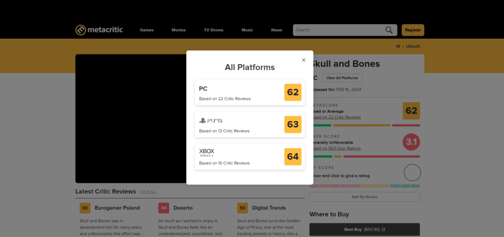 بازی Skull and Bones بالاخره پس از سالها انتظار منتشر شد. در این خبر نگاهی به میانگین نمرات بازی Skull and Bones، اولین بازی AAAA تاریخ میاندازیم!