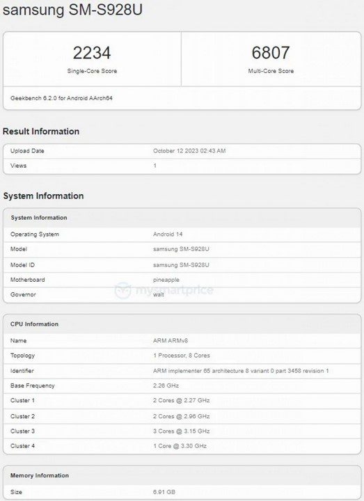 گلکسی اس ۲۴ اولترا با پردازنده اسنپدراگون در گیکبنچ دیده شد