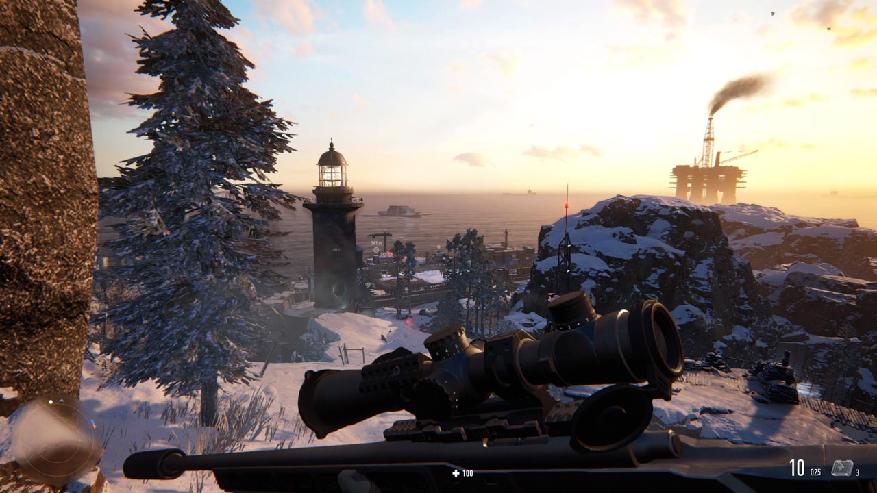 یکی از مواردی که در طول بازی مدام آزارم میداد، نورپردازی بازی بود که تاثیر مستقیمی روی گیمپلی بازی گذاشته است. در برخی از ماموریتها باید به مکانی رفته و کاری را انجام دهید؛ حال تصور کنید این مکان یک ساختمان نیمهکاره باشد و نور آفتاب از پشت به سمت دشمنان در حال تابش است. همان طور که گفته شد، شما آنها را نشانهگذاری کرده و فاصلهی خود تا هدف را میسنجید. در موقعیتهایی که که نور خورشید مستقیم به سمت دشمن است، عددی فاصلهی شما با دشمنان، به صورت محو نمایش داده میشود. اشتباه نکنید! این یک باگ نیست، بلکه استفادهی اشتباه سازندگان از رنگ سفید در طراحی رابط کاربری (UI) است که باعث ایجاد این مشکل شده است.