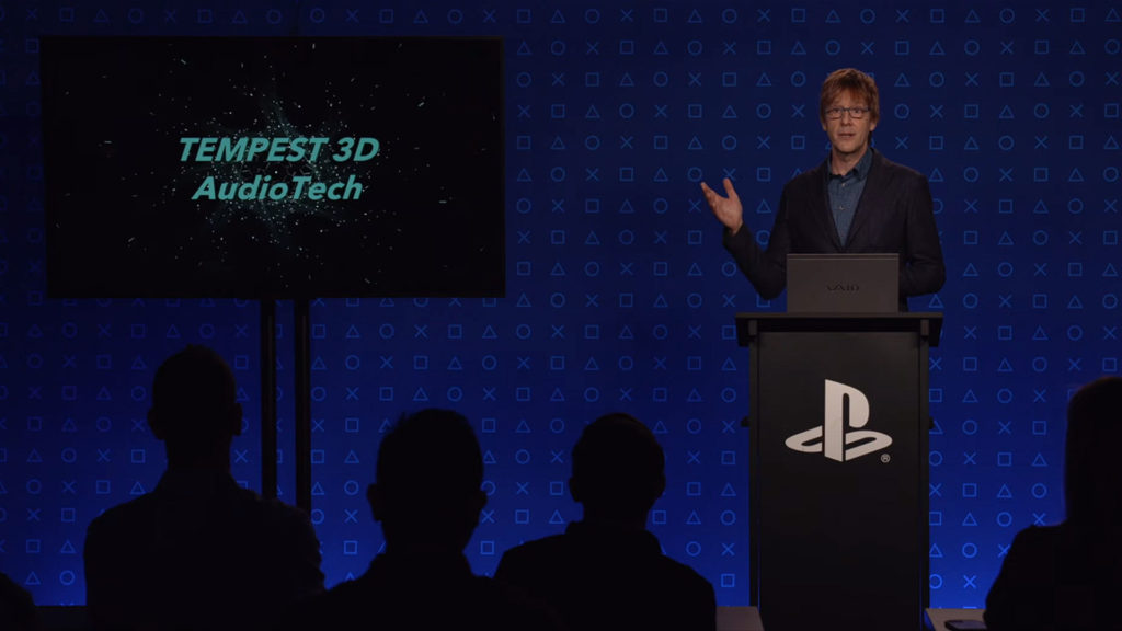 یکی از بزرگترین بخشهای توضیحات مارک سرنی به تلاشهای او و تیمش برای ایجاد انقلابی در واحد پردازش صوتی اختصاص داشت. کنسول PS3 با بهرهگیری از واحدهای SPU، قابلیتهای مناسبی برای پردازش صدا داشت؛ قابلیتی که در نسل فعلی غایب بود و پردازندههای جگوار PS4 تنها کسری از توان خود را برای پردازش صدا میگذاشتند. سرنی و تیمش در طراحی PS5 به عقب برگشته و با طراحی یک موتور جدید به نام Tempest که شباهت زیادی به SPU دارد، تحول شگرفی در نوع پردازش صوت در بازیها به وجود آوردهاند. تمرکز تیم طراحی روی به ارمغان آوردن حس «حضور» در محیط بازی و تشخیص «موقعیت» صدا بوده، طوری که بازیکن بتواند به خوبی حس کند که منبع صدا از کدام سمت میآید. چنین ایدهی جاهطلبانهای از طریق مدلسازی سیستم HRTF تعداد زیادی از افراد ممکن شده که برای هر شخص منحصربفرد است و چگونگی درک صدا و موقعیت آن را برای هر فرد متفاوت میکند. بدیهی است که نمیتوان HRTF هر بازیکن را مدلسازی کرد و این فناوری هنوز اول راه است، اما سونی فعلا پنج مدل مرجع را در دسترس قرار داده و در تلاش است تا راهی پیدا کند که تجربهی شنیدن صدای کاملا سهبعدی مختص هر بازیکن را امکانپذیر کند. اتفاقی که در صورت رخ دادن، تجربهی کاملا نو و حیرتانگیزی از یک بازی ویدیویی را به ارمغان میآورد.