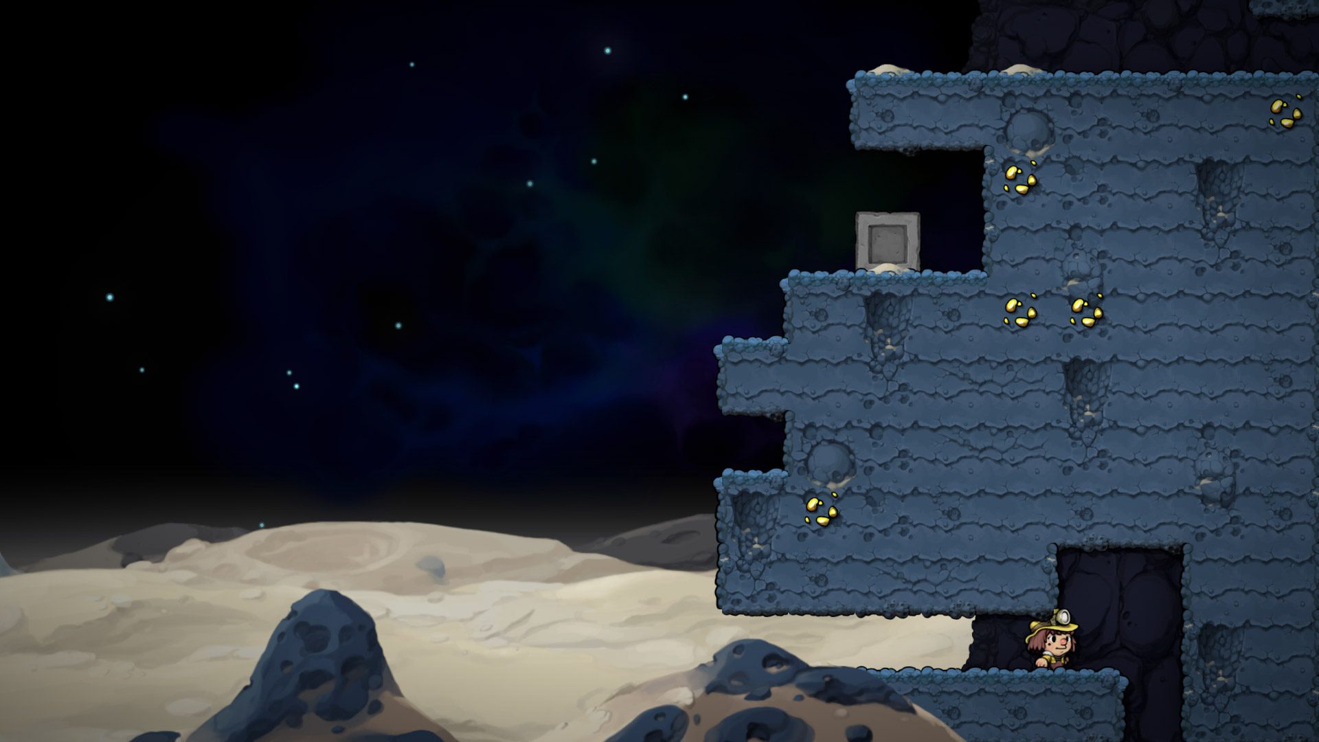 بازی از لحاظ گرافیک هنری و فنی چشمنواز است و جزئیات زیادی در طراحی کاراکترها و محیط به چشم میخورد. از طرفی بازی باگها و ایرادات فنی بسیار کمی دارد و اصلا پیش نمیآید که مثلا ناخواسته NPCهای بازی تحریک شده و به شما حمله کنند. بهعنوان کمک حال شما، تعدادی فروشگاه هم در برخی استیجها وجود دارند که آیتمهای تقویتی در ازای پول به شما میفروشند؛ امکان دزدیدن این آیتمها هم وجود دارد اما در آن صورت باید از دست فروشندهی عصبانی که قصد جانتان را میکند فرار کنید. با آنکه تمرکز بازی روی گیمپلی منحصر به فرد خود است، اما مطابق قسمت اول داستانی هم در آن گنجانده شده که ماجراهای فرزند Spelunky Guy را روایت میکند. «آنا» باید در کرهی ماه به دنبال پدر و مادرش بگردد که سالها قبل به دنبال پیدا کردن گنجی ارزشمند به این کره آمدهاند. داستان کمرمق و کمرنگ است و هدف پشت آن صرفا زمینهچینی برای دنیا و اتفاقات بازی است که از این جهت نمیتوان چندان به آن خردهای گرفت.