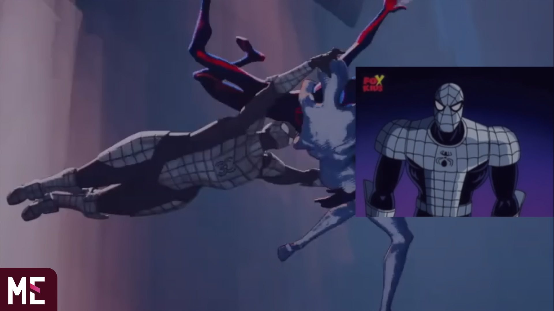 با این وجود، پس از رفتن مایلز به جهان موازی و جایی که به نظر میرسد خانه هزاران مرد و زن عنکبوتی است، یک اشاره جالب به فیلم انتقام جویان 4 دیده میشود. اگر به دست هرکدام از شخصیتهای مرد عنکبوتی دقت کنید، ظاهرا یک مچبند مشابه با آنچه که تونی استارک (Tony Stark) در فیلم Avengers: Endgame برای انتقام جویان ساخته بود دیده میشود.