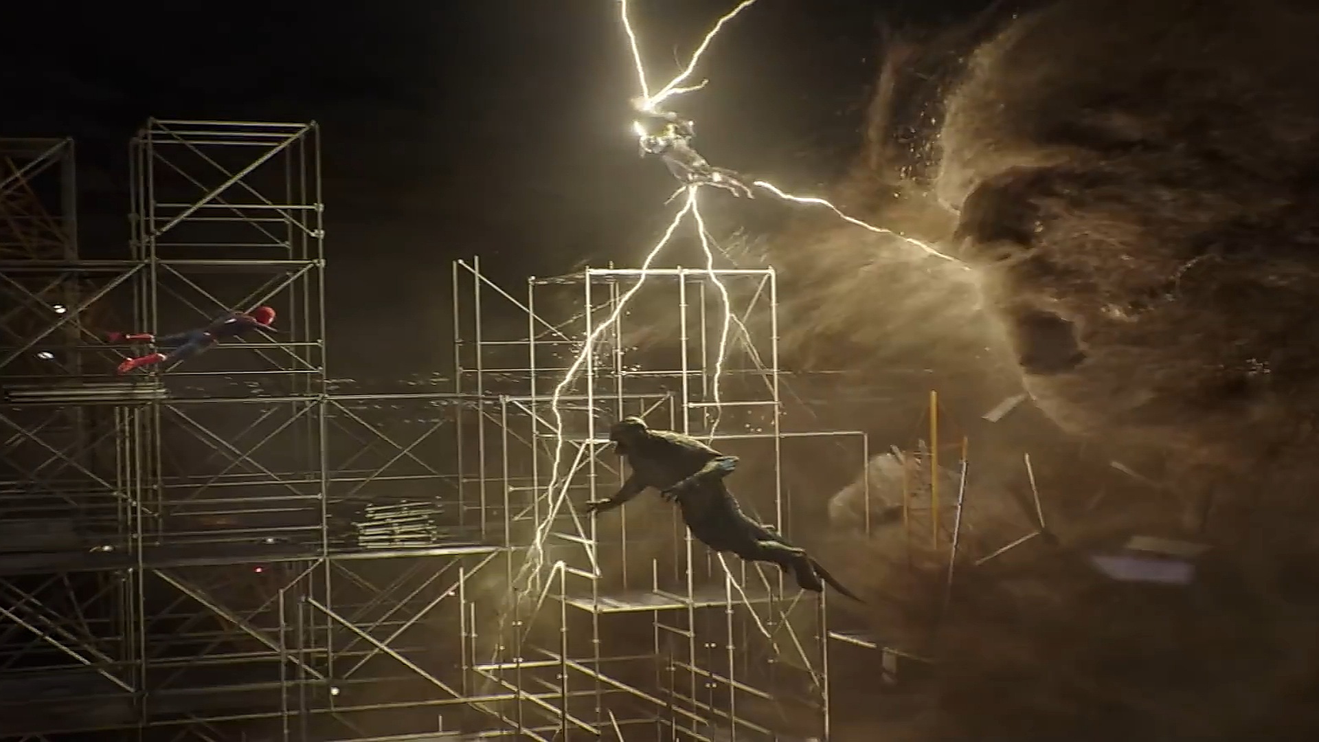 اما از آنجا که پیتر پارکر تام هالند در جریان جنگهای بزرگ Infinity War و Endgame بوده، با کار تیمی خوب آشنایی دارد و حتی در یک صحنه هنگامی که هر سه آنها به سمت ابرشرورها میروند، با یک تار هر دو آنها را به سمت یک مکان میکشاند تا در یک سکانس، سه نفری مقابل الکترو، سندمن و لیزارد قرار بگیرند.