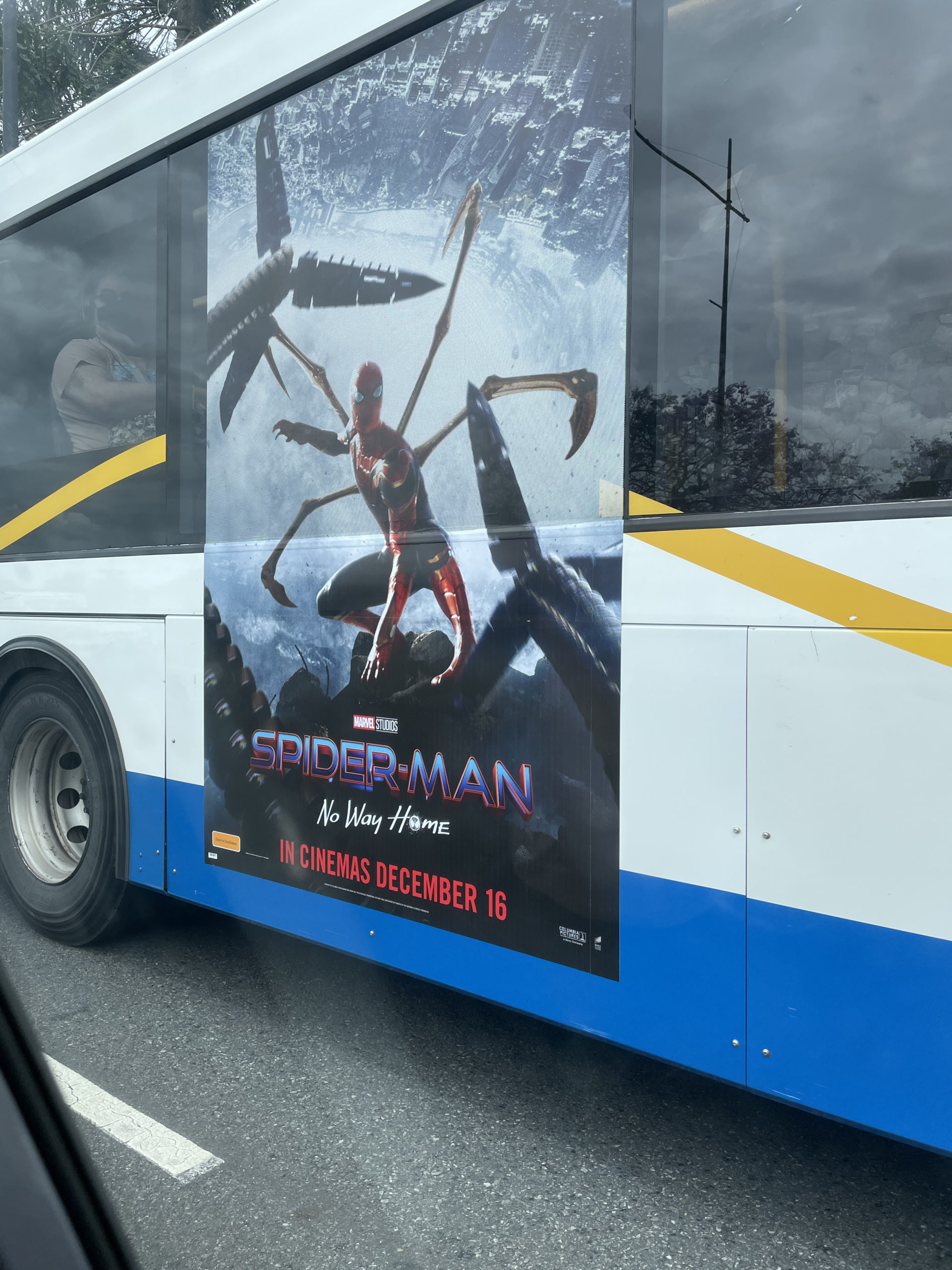 سونی پیکچرز در ماه آگوست تریلر رکوردشکن قسمت سوم مرد عنکبوتی را برای اولین بار نمایش داد که در آن مخاطبان شاهد اولین نگاه به «پیتر پارکر» بدون نقاب با شخصیت شرور زنده شده مرد عنکبوتی دو بودند؛ اما فقدان پوستری رسمی باعث شد تا برای تبلیغ از پوسترهای طرفداران استفاده شود. اما یکی از کاربران Reddit به تازگی چیزی را فاش کرده است که به نظر میرسد اولین پوستر برای No Way Home باشد که به کنار اتوبوسی در ملبورن، استرالیا چسبیده است.