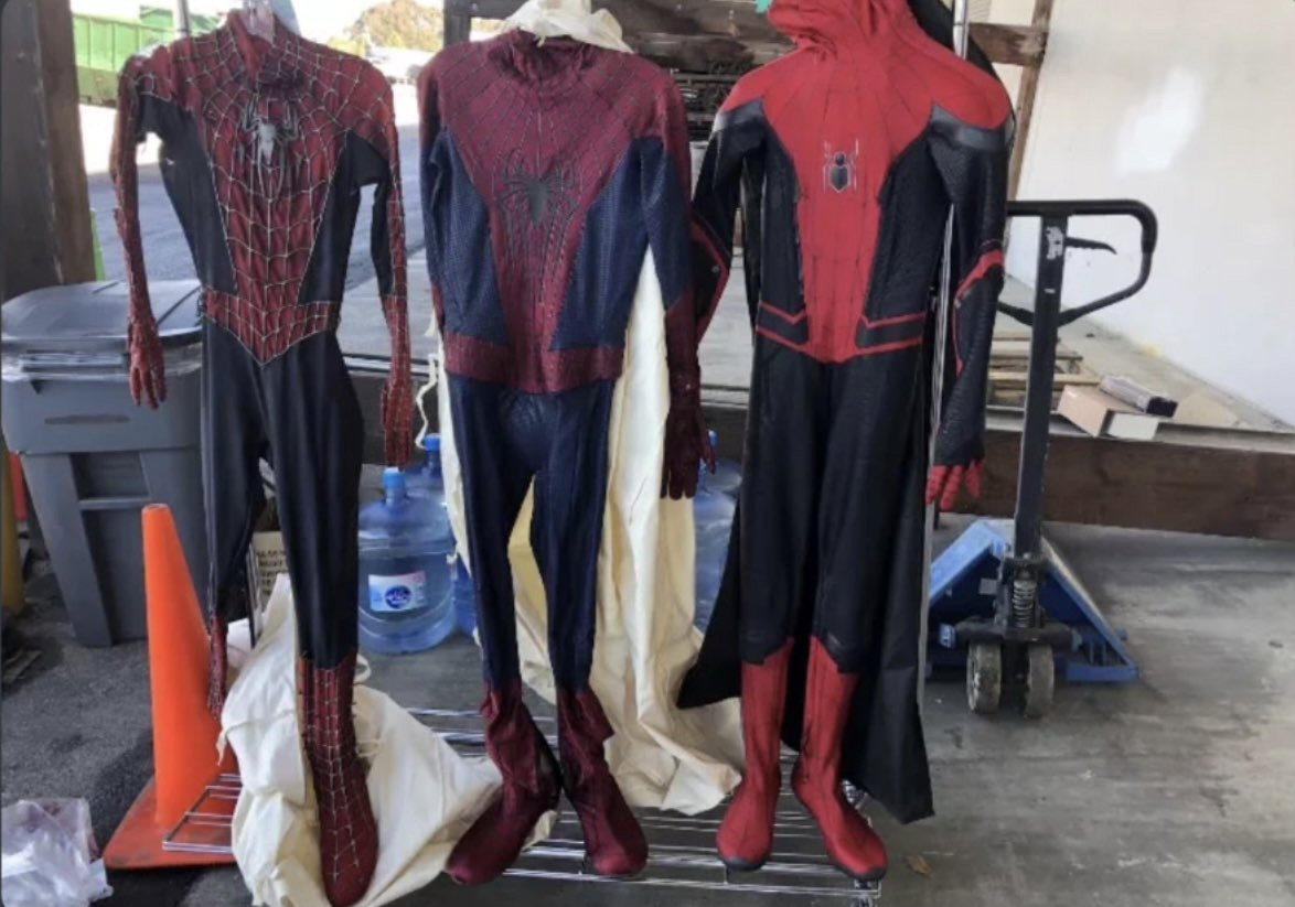 تصویر پشت صحنه Spider-Man No Way Home که ساعاتی قبل در شبکه اجتماعی توییتر لو رفت، لباس هر سه مرد عنکبوتی را کنار هم نشان میدهد.