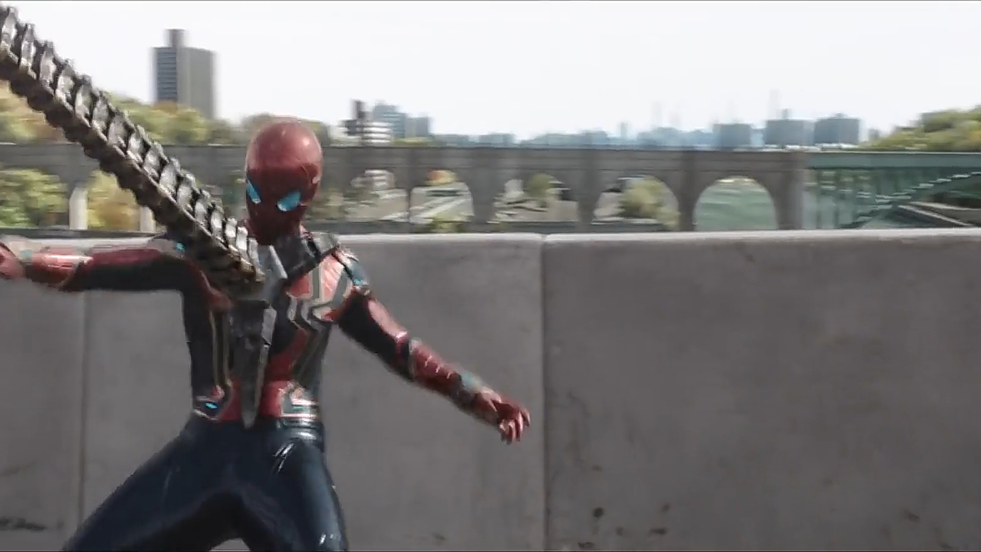 حال میتوانید جزئیات مربوط به این حرکت را در کلیپ جدید منتشر شده از Spider-Man: No Way Home بیینید؛ جایی که هنوز دکتر اختاپوس چهره پیتر را ندیده و به او میگوید «این لباس پر زر و برق تو نمیتواند جانت را نجات دهد!». همچنین وقتی که پیتر به دست او گیر افتاده، میتوانید ببینید یکی از چنگالهای دکتر اختاپوس در حال داره کردن بخشی از لباس است که در سکانس بعدی میبینیم کاملا جدا شده و با بخش کله جایگزین میشود تا پیتر آسیب نبیند.