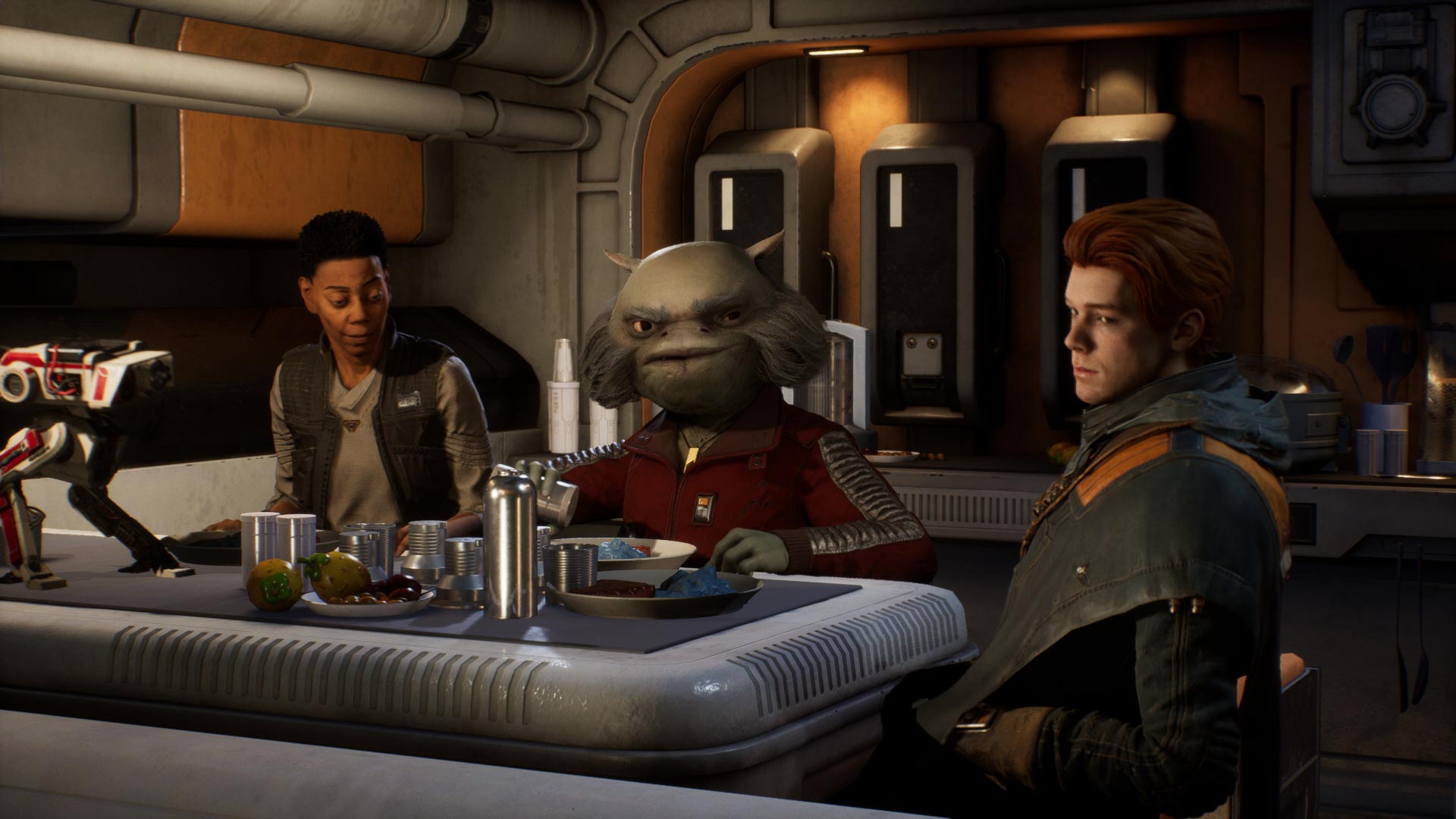 سفر کال تنها خط داستانی Jedi: Fallen Order نیست؛ شخصیت Cere هم که در گذشته یک جدای بوده است، با کشمکشهای درونی خود دست و پنجه نرم میکند. نویسندگان با پرداختن به گذشته، انگیزهها و کشمکشهای Cere سعی در خلق شخصیتی پیچیده دارند، اما چون بیش از سه چهارم بازی او را تنها در سفینه میبینیم و به جز یک ساعت پایانی کمتر اکشنی از او میبینیم، به آن خوبیای که باید نمیشود. از سوی دیگر اما Greez را داریم که برای من یکی از بهترین شخصیتهای بازی است. گریز کاپیتان سفینهی Stinger Mantis در ابتدا توسط Cere استخدام شد و در گذشته موجودی خودخواه بیش نبود و تنها به پول درآوردن از هر راهی و گذران زندگی فکر میکرد، اما این ماموریت مهم طرز تفکر او را عوض کرده است و میخواهد آدم خوبی باشد. علاوه بر این شخصیتپردازی، بار دیالوگهای طنز هم بر عهدهی گریز است که به لطف صداپیشگی بسیار خوب بیش از پیش جذاب میشود. شخصیتهای حاضر در بازی به همین سه نفر محدود نیست و با سر زدن به سیارههای مختلف با افراد جدیدی برخورد خواهید داشت که برخی هدفی یکسان با شما دارند و برخی دیگر در مقابلتان میایستد. نویسندگان حتی برای شخصیتهای منفی مثل Second Sister هم جزئیاتی در نظر گرفتهاند که برای لو نرفتن داستان به آنها نمیپردازم. از آنجا که Jedi: Fallen Order یک عنوان Canon حساب میشود، بیجا نیست که شاهد ارجاعاتی به فیلمها و سریالهای مهم باشیم که خوشبختانه بازی در این زمینه کم نمیگذارد.