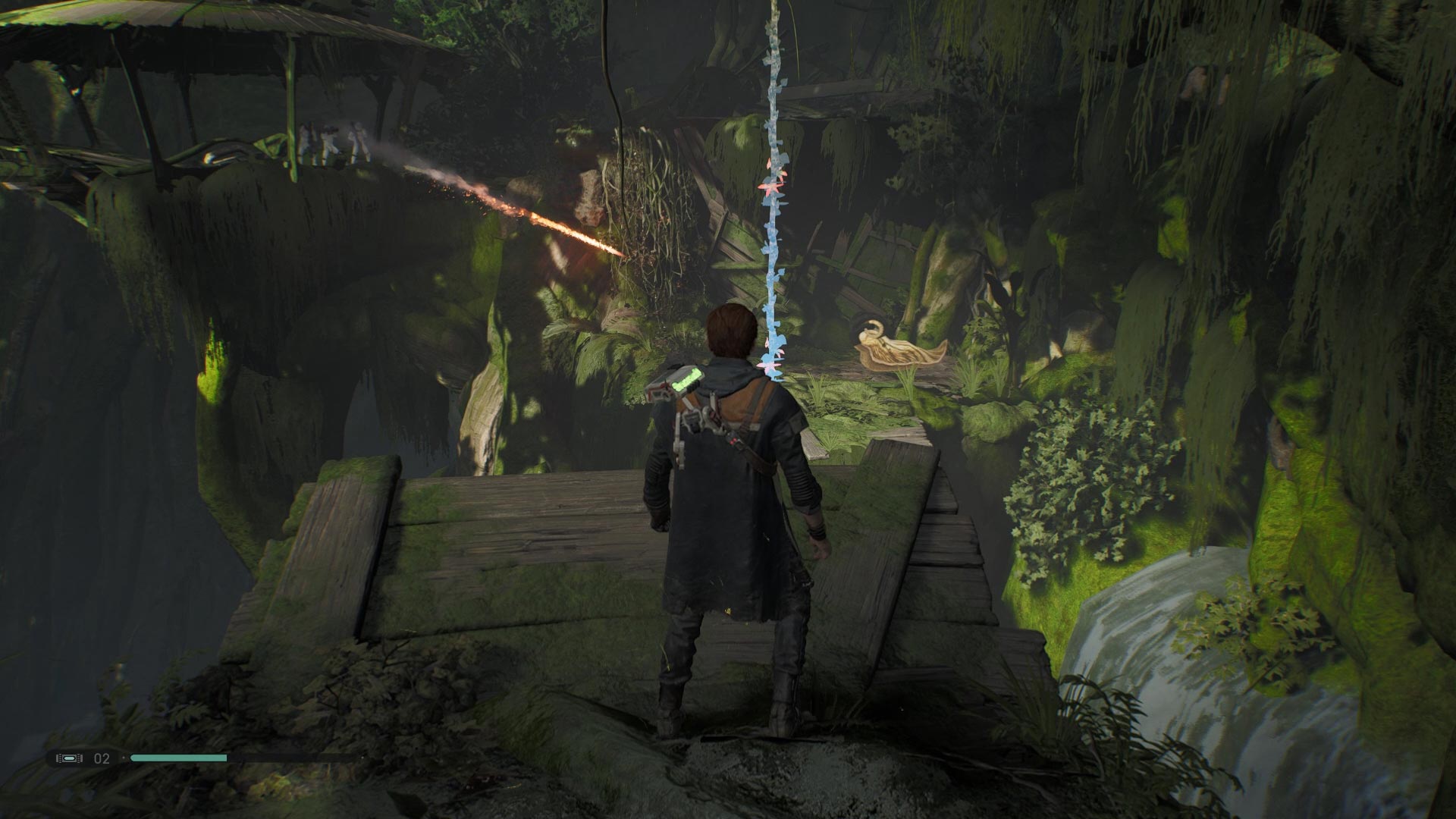 طراحی مراحل خط داستانی بسیار هوشمندانه است؛ بهویژه در نیمهی دوم بازی که به طور همزمان روایت داستان جدیتر میشود و چالش و هیجان مبارزات افزایش مییابد. مکمل این طراحی خوب تنوع بالای مکانیکها و قابلیتهاست؛ یک طرف قضیه Lightsaber را دارید که خود به مرور ارتقا پیدا میکند و میتوان قابلیتهای بیشتری هم در درخت مهارتها برایش باز کرد، یک طرف دیگر مکانیکهای پلتفرمینگ و حل معما قرار میگیرند و طرف دیگر قابلیتهای وابسته به فورس که هم در مبارزات و هم در پلتفرمینگ و حل معما کارآمد هستند. تازه از تاثیر BD-1 در گیمپلی چیزی نگفتم! ربات بامزهای که طبق سنت فیلمها یار شخصیت اصلیست و یکی از المانهای مهم گیمپلی به شمار میرود. ربات BD-1 به مرور و با دریافت ارتقاهای جدید، در پیشروی در محیطها بسیار کارآمد میشود. سیستم اسکن ربات هم اطلاعاتی را ذخیره میکند که در بخش Data Bank در منو قرار میگیرند و شما را بیشتر با دنیای بازی آشنا میکنند. نقطهی قوت این همه مکانیک بلااستفاده نبودن آنهاست. بازی کلی المان ریز و درشت جلویتان قرار میدهد و از همگیشان در زمان مناسب استفاده میکند. حتی بازی تلاش خود را میکند تا هر مکانیک بهسرعت برای بازیکن جا بیفتند. برای مثال پس از دریافت هر کدام از تواناییهای وابسته به فورس، چند دقیقهای را به سکانسهای پلتفرمینگ یا حل پازل خواهید گذراند که به طور خاص وابسته به آن قابلیت جدید هستند. هر چه جلوتر میروید، مکانیکها بیشتر میشوند و در نتیجه روند متنوعتر. به خود میآیید و میبینید چند دقیقه بدون مکث درگیر ترکیبی جذاب از مبارزه و پلتفرمینگ هستید بدون اینکه خسته شوید. جادویی که به لطف طراحی دقیق و هوشمندانه حاصل میشود، اما پیادهسازی صوتی و بصری دقیق هم در آن نقشی حیاتی دارد.