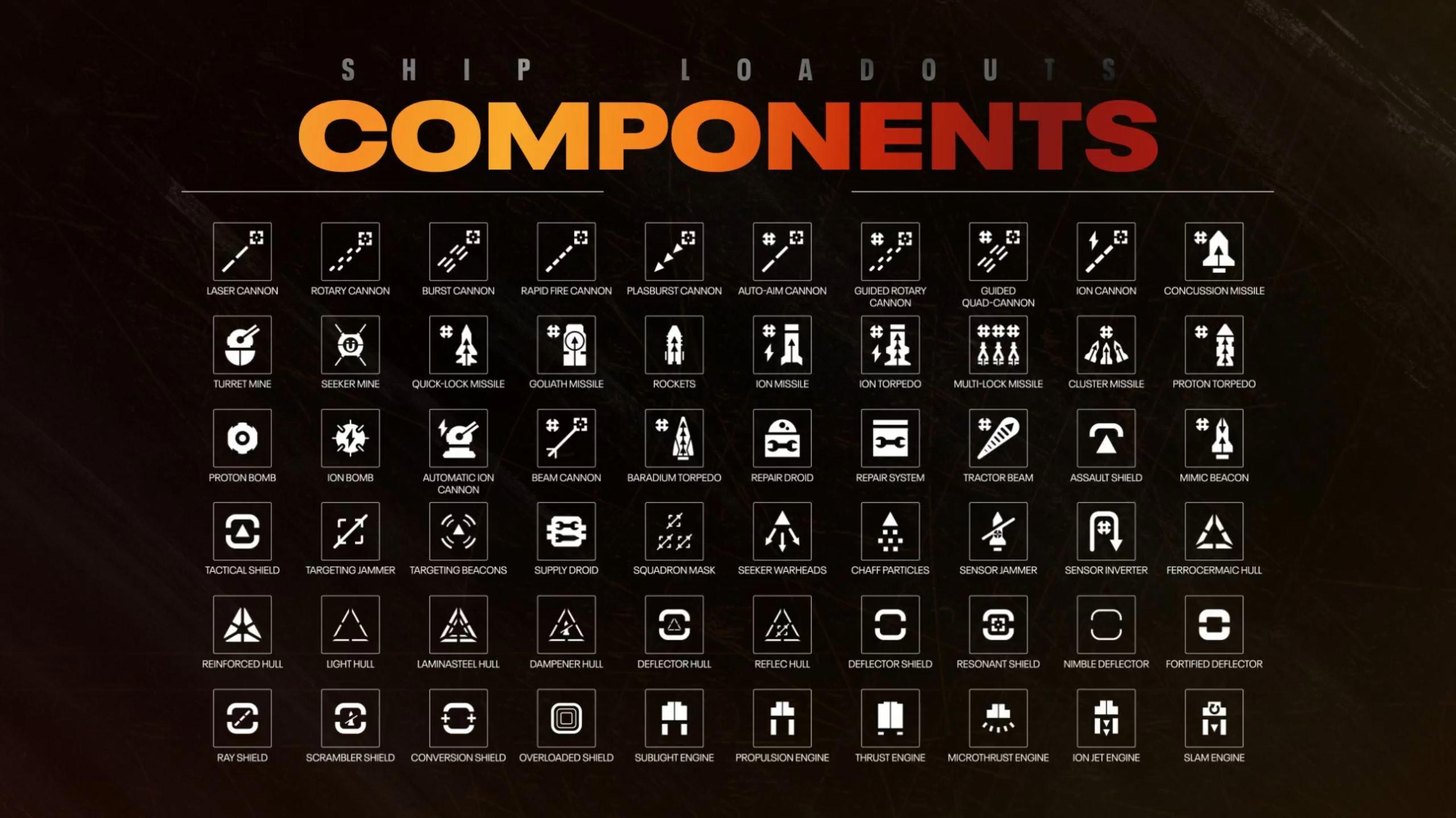 سفینههای موجود در بازی شامل چهار کلاس Fighter و Interceptor و Support و Bomber است که هر کدام دو نوع دارند. سفینههای هر کلاس هر کدام مشخصات و قابلیتهای مخصوصی دارند، اما قضیه به همینجا ختم نمیشود. شما میتوانید اسلحه و همچنین موارد دیگر مثل سپر سفینهی خود را از میان ۵۰ تجهیزات مختلف انتخاب کنید که تنوع بالا و چشمگیری دارند و با پیشروی در بازی به تمام آنها دسترسی خواهید داشت. البته سازندهها کاملا به قوانین و منطق دنیای استار وارز وفادار هستند که در نتیجه روی هر سفینهای نمیتوان هر تجهیزاتی را سوار کرد و مثلا یک TIE Fighter نمیتواند سپر حفاظتی داشته باشد.