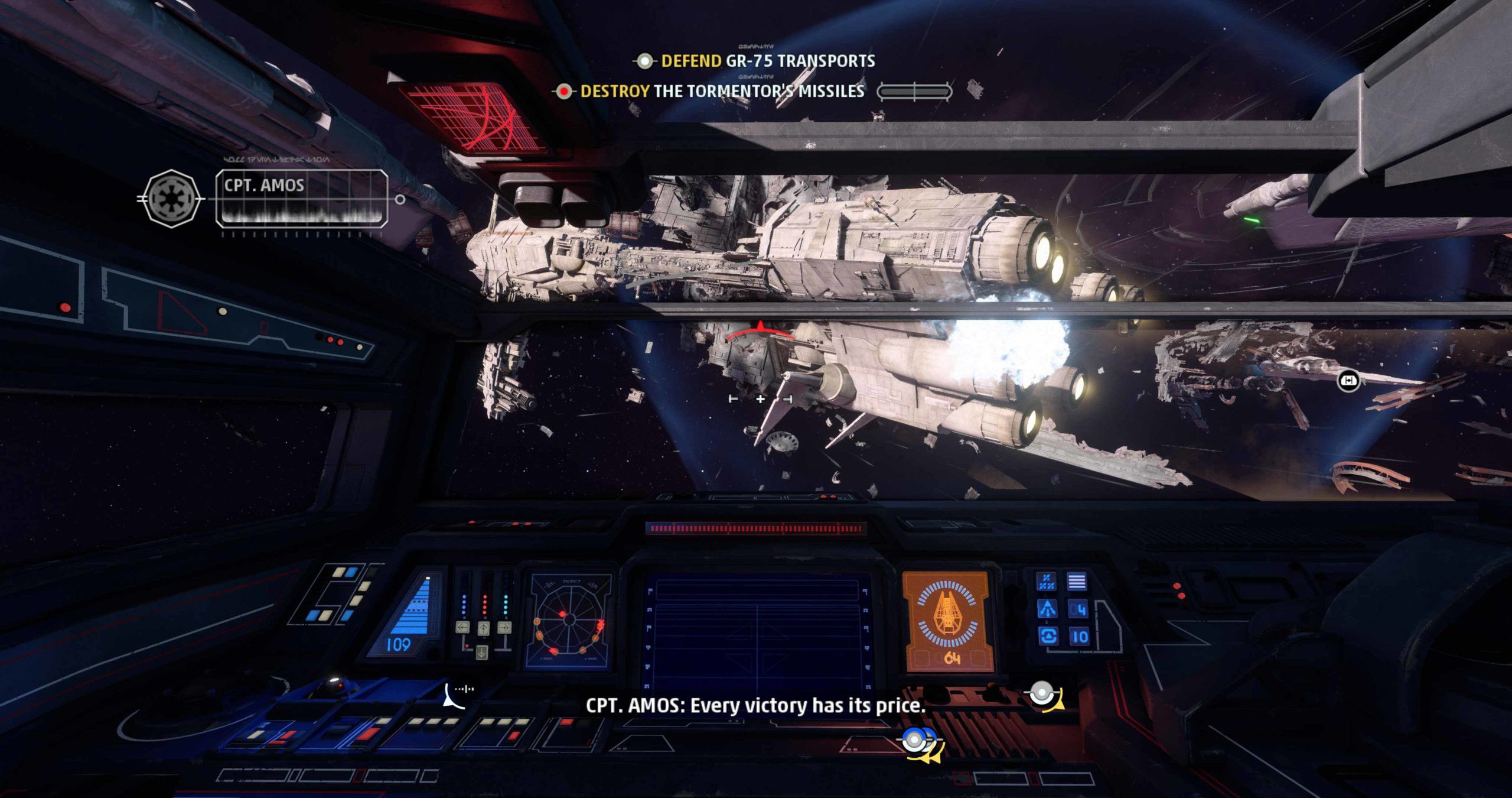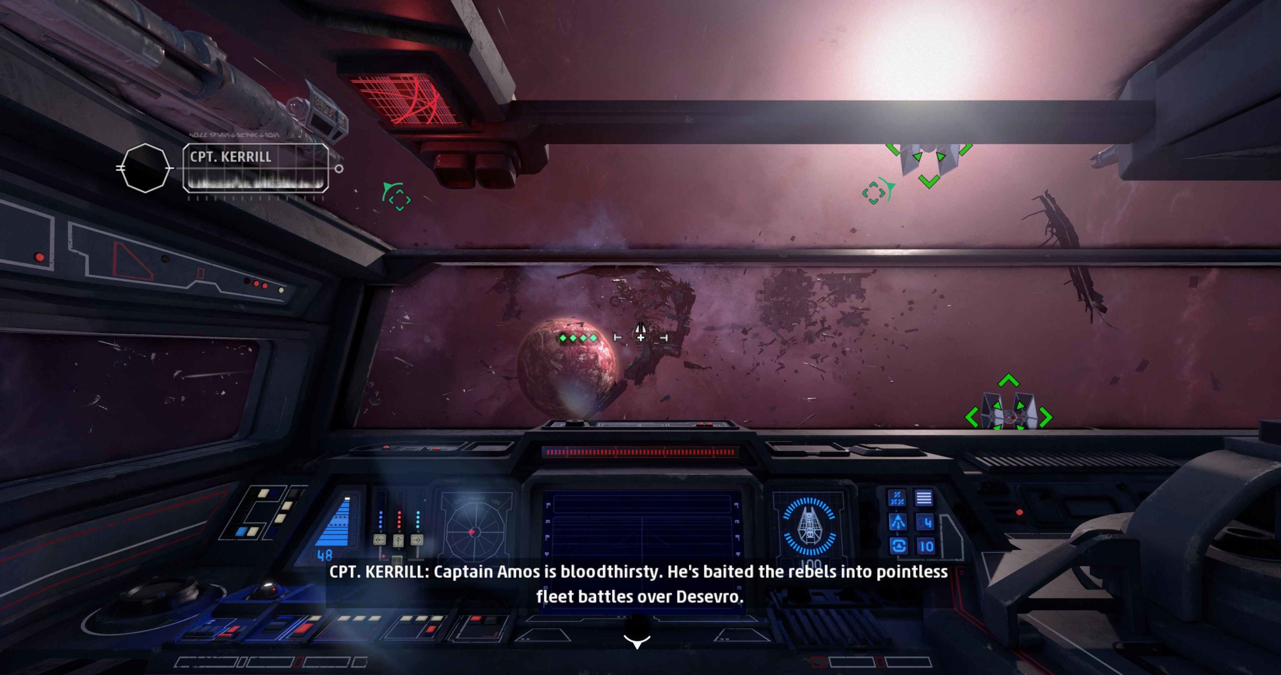 گیمپلی بازی البته خالی از اشکال هم نیست. کنترلهای بازی علیرغم سرراست بودن و امکان شخصیسازی فراوان، برای استفاده با موس و کیبورد چندان مناسب نیستند و مانور دادن با جنگنده را کمی زیادی سخت میکنند. این مسئله در بخش چندنفره که مبارزههای بسیار پر جنب و جوشتری دارد ملموستر میشود، به طوری که اگر قلق کار دستتان نیاید یا تسلط خداگونه بر موس نداشته باشید، غیرممکن است یک لیزرتان هم به هدف بخورد. با کنترلر، تجربهی بازی بسیار بهتر میشود، چرا که میتوانید هم مانور بهتری با سفینه بدهید و هم راحتتر دکمهها را پیدا میکنید. دیگر مشکل بازی، طراحی نه چندان خوب HUD است که در شرایط مختلف گیجکننده بوده و اهداف را به خوبی برایتان مشخص نمیکند. یک نکتهی عجیب در رابطه با تجربهی کاربری بازی Star Wars: Squadrons آن است که اگر موس را در تنظیمات غیرفعال کنید، امکان استفاده از آن نه تنها در داخل بازی، بلکه حتی در منوها هم از کار میافتد!