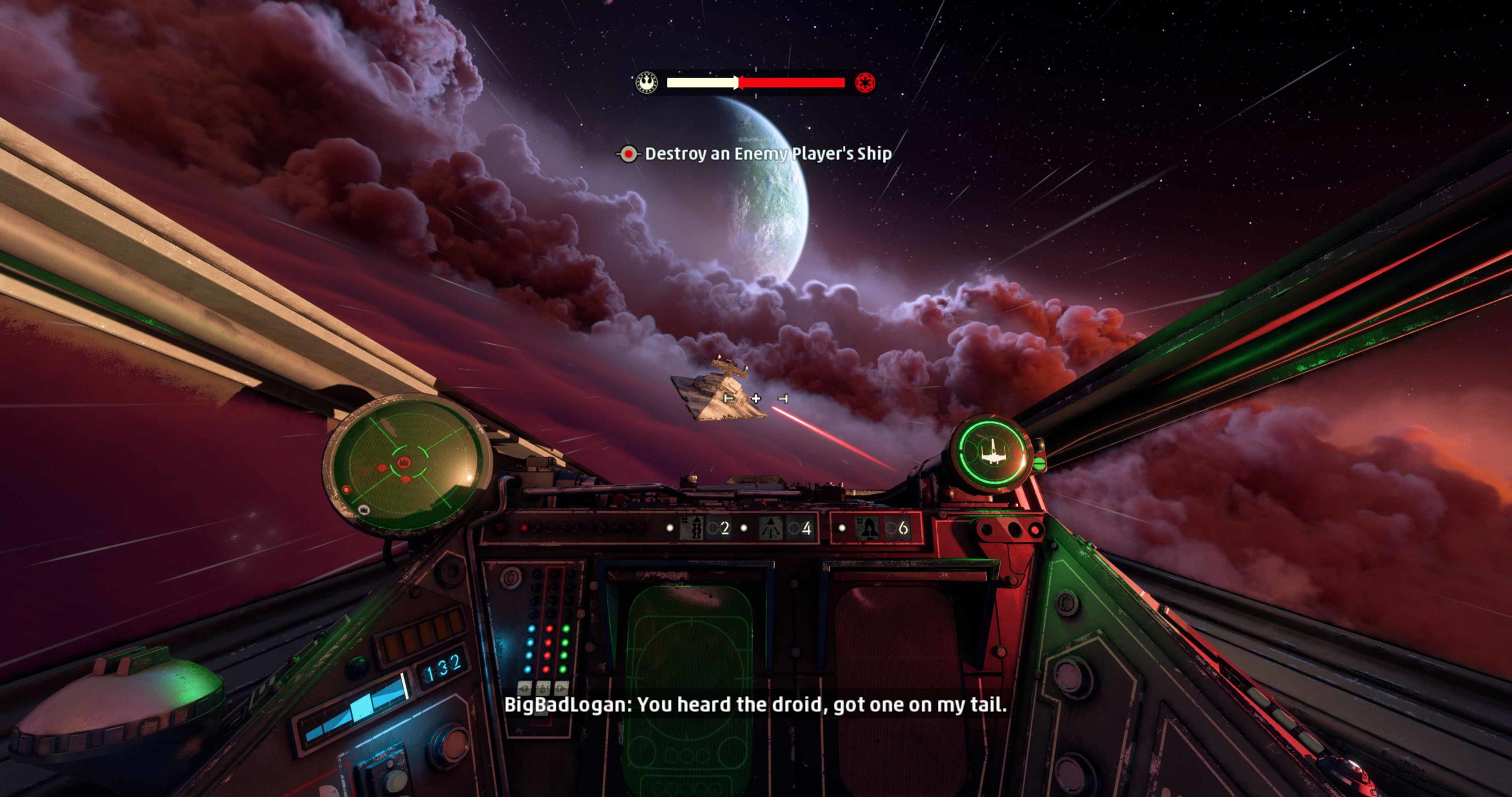 بخش چندنفرهی Squadrons در حال حاضر تنها دو مود دارد (و ظاهرا هم قرار نیست چیزی به آن اضافه شود). مود Dogfight همانطور که از نامش پیداست، نبرد مستقیم جنگندههای دو تیم با هم است که حکم همان Deathmatch بازیهای شوتر را دارد. بازیکنان در قالب دو تیم پنج نفره از جمهوری جدید و امپراطوری مقابل هم قرار میگیرند و توانایی انتخاب از میان چهار سفینهی منحصر به فرد را دارند. تنوع جنگندهها که شامل انواع TIEها و سفینههای دوستداشتنی Y-Wing و A-Wing میشوند، برای ارائهی یک تجربهی سرگرمکننده مناسباند، اما مود داگفایت هیچ استراتژی خاصی را نمیطلبد و در بیشتر مواقع پر از هرج و مرج است؛ این مسئله آن را به مرور تکراری و آزاردهنده میکند. مود دوم به نام Fleet Battles اما تجربهای کاملا متفاوت است. در این مود، بازیکنان باید ابتدا در یک نبرد اولیه جنگندههای تیم حریف را نابود کنند. هر تیمی که عملکرد بهتری داشته باشد، وارد فاز بعدی شده و باید کشتیها پشتیبان حریف را از پیش رو بردارد. استیج نهایی هم مبارزه با کشتی فرماندهی رقیب است که برای تیم امپراطوری Star Destroyer افسانهای و برای جمهوری هم کروزر MC75 است. فلیت بتلز بر خلاف داگفایت احتیاج به دقت در انتخاب سفینه و برنامهریزی تیمی دارد چرا که هر سفینهی بزرگ دشمن ویژگیهای خاص خود را داشته و باید از راههای مختلف به آنها ضربه زد.