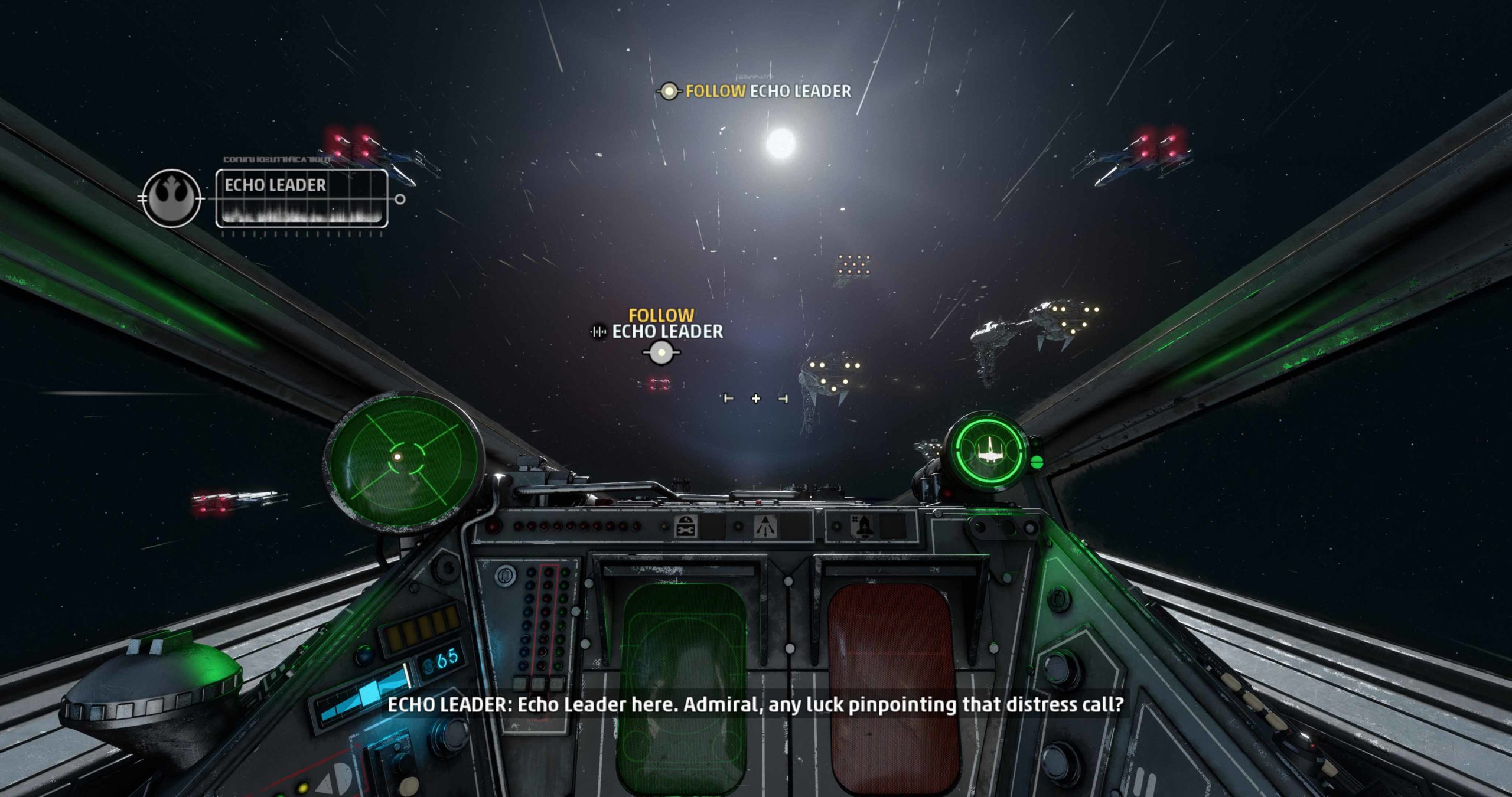 با وجود آن که داستان نیمی از این بازی است، اما پیرنگ آن چندان حرفی برای گفتن ندارد. در عوض آن چه که در Squadrons میدرخشد، فضاسازی و انتقال فوقالعادهی حس جنگیدن در فضا با سفینههای کلاسیک و آشنای دنیای جنگ ستارگان است. مراحل بازی شامل ماموریت گرفتن از تیم فرماندهی و سپس آمادهسازی سفینه برای اعزام میشوند. اکثر مراحل بازی کارهای تکراری همچون نابود کردن سفینههای دشمن یا محافظت از نیروهای خودی را در بر میگیرند، البته گهگاهی هم لحظات هیجانانگیز و غافلگیرکننده میانشان وجود دارد. اما فضایی که مراحل در آنها جریان دارند به اندازه کافی خوب هستند که هر بار برایتان تازگی داشته باشند. از نبرد در میانهی بقایای کشتیهای نابودشده گرفته تا تعقیب و گریز در لابهلای شهاب سنگهای متراکم، Squadrons با محیطهای شگفتانگیز خود همیشه چیزی برای غافلگیر کردنتان دارد.