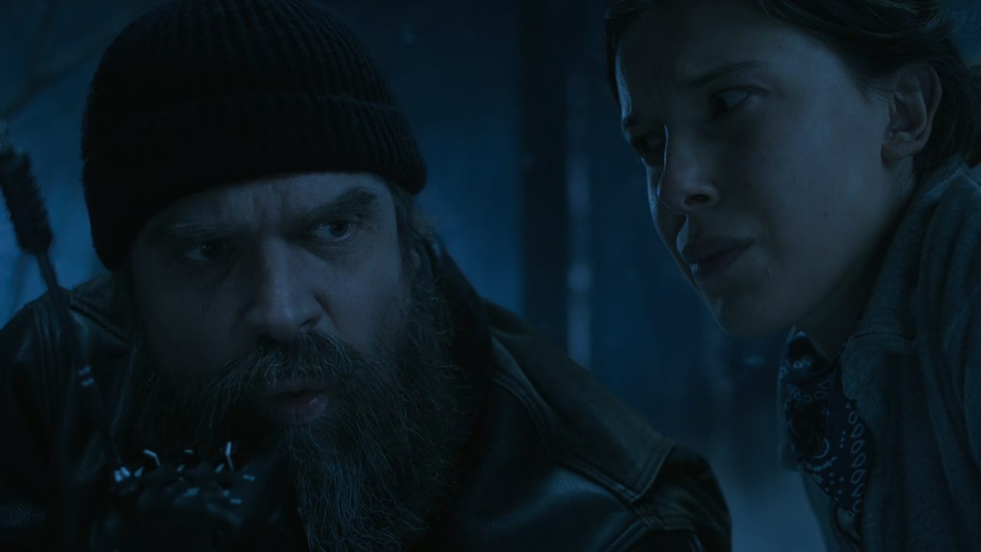هاپر همچنین در حال صحبت با شخصیت مایک ویلر نزدیک به سینمای شهر هاوکنیگز مشاهده میشود. سینمایی که ظاهرا در حال پخش فیلم سینمایی Indiana Jones and the Last Crusade محصول سال 1989 است. براساس سال انتشار این فیلم، به نظر میرسد این بخش به جای آن که یک فلشبک باشد، بخش اختتامیه سریال بد و بدین ترتیب سرنوشت دو مورد از شخصیتهای محبوب سریال را از هماکنون مشخص میکند.