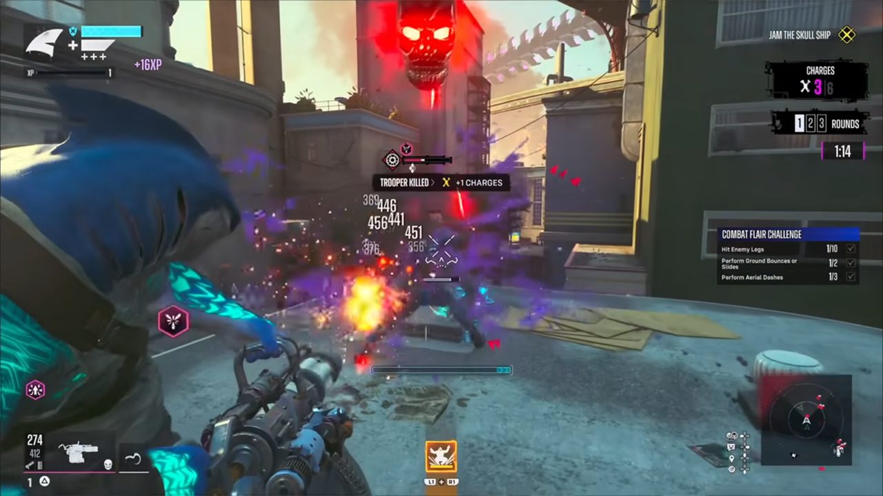 بازی جوخه انتحار ترکیبی از سبکهای لوتر شوتر جهان باز و ابرقهرمانی است که به واقع مانند آب و روغن به خوبی یا بهتر است بگوییم اصلا با یکدیگر ترکیب نشدهاند! ساعات ابتدایی بازی بسیار جذاب بوده و مبارزات پر تنش و درگیر کننده شما را برای ساعات ابتدایی به خود جلب میکنند، اما با پیشروی داستان، گیم پلی بازی پیشرفتی نکرده و روی خط صاف بدون پایین و بالا پیش میرود.