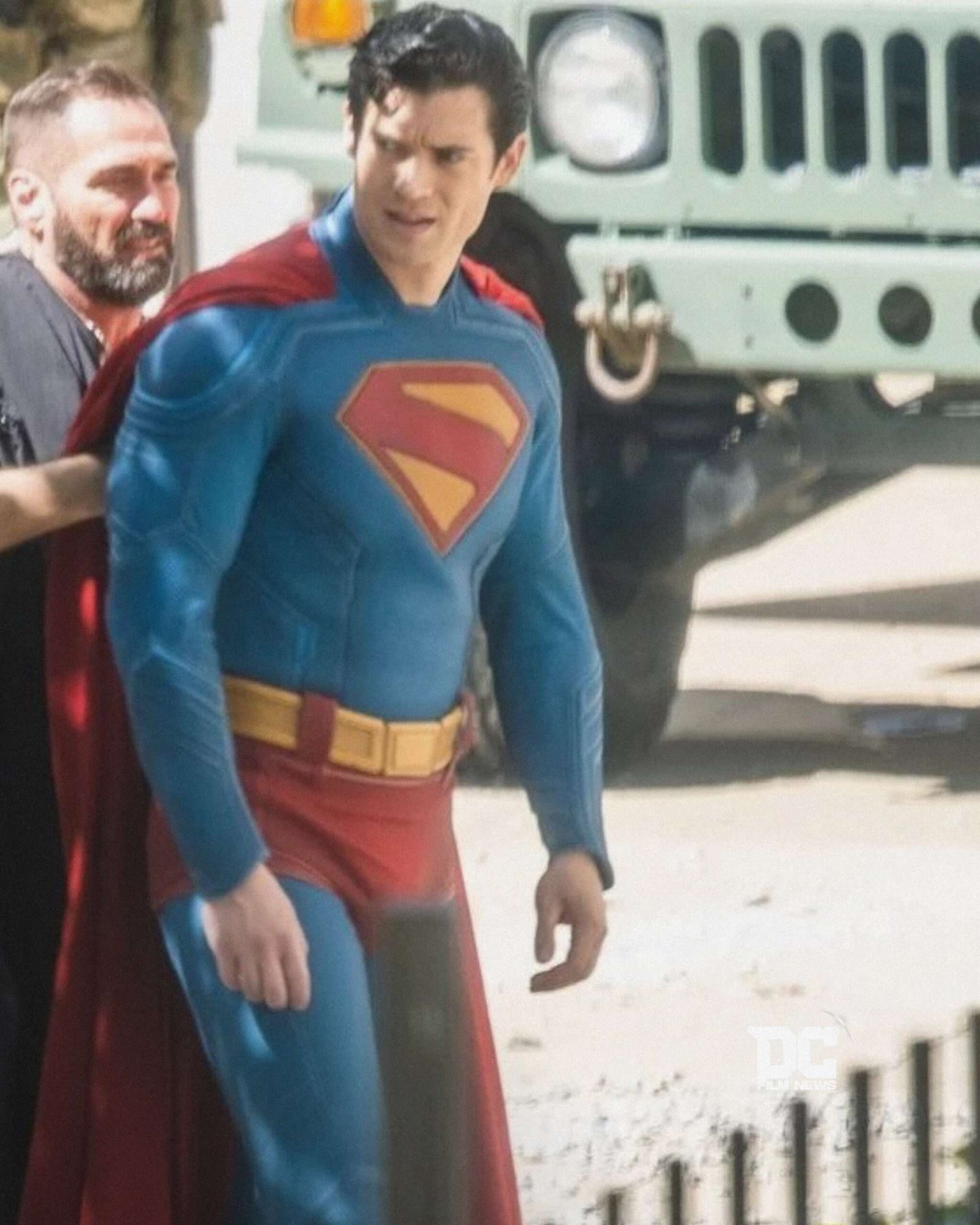 اکانت DC Film News که در شبکه اجتماعی ایکس (توییتر سابق) فعالیت دارد، عکسهای پشت صحنه Superman را به اشتراک گذاشته است. تعداد تصاویر به رقم ۷ رسیده و شامل نگاهی کاملاً واضح به لباسهای سوپرمن و مستر تریفیک میشوند. لباس مرد پولادین قبل از این رونمایی شده بود اما این تصاویر اولین نگاهمان به لباس مستر تریفیک محسوب میشوند: