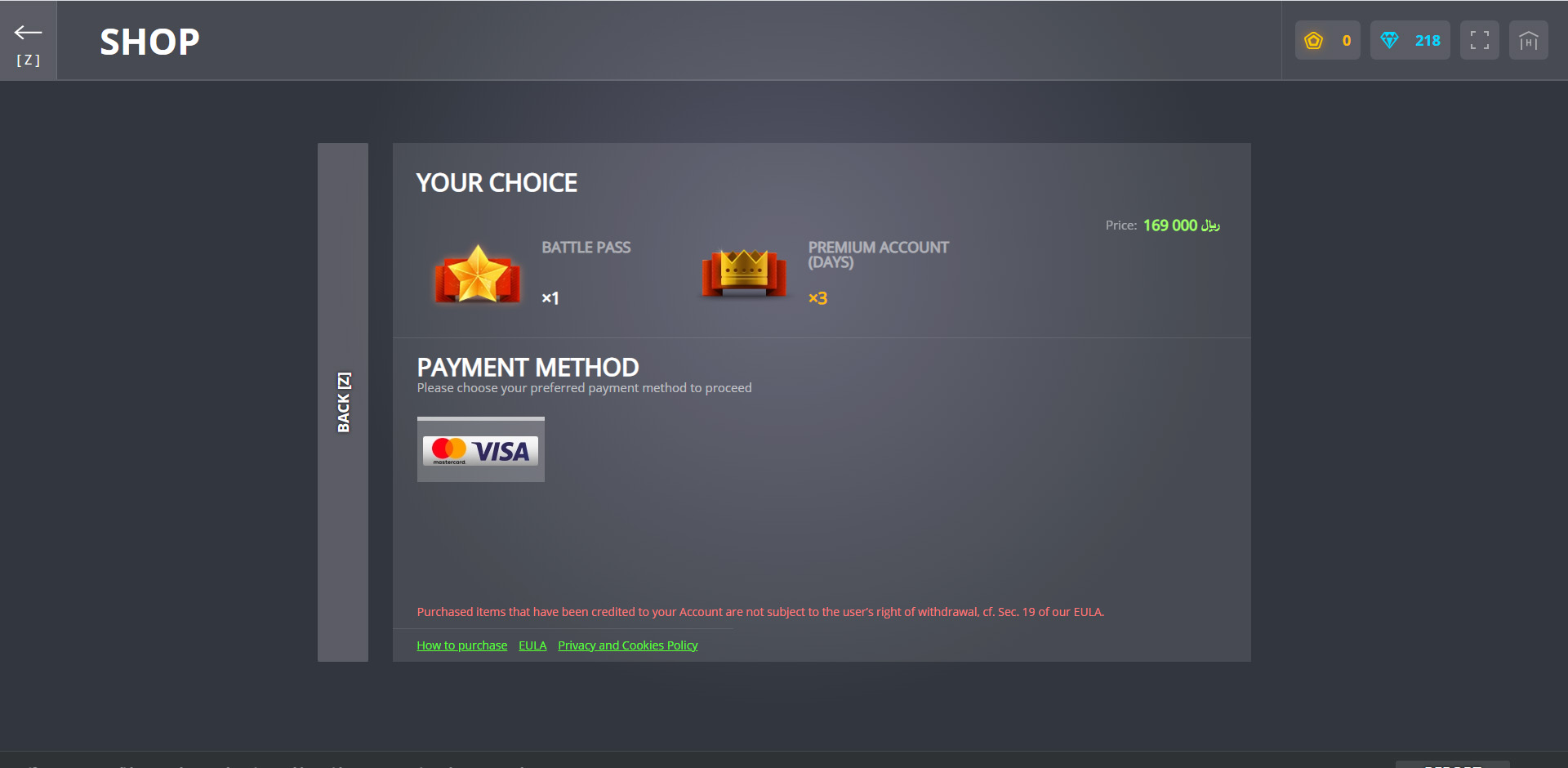 یکی دیگر از تغییراتی که به لحاظ ظاهری در منوهای بازی ایجاد شده، به بخش فروشگاه یا همان شاپ مربوط میشود که برخی از بازیکنان ایرانی و فارسیزبان را درگیر ابهام کرده است. برخلاف درج دکمهی ویزاکارت، شما هیچ نیازی به داشتن این کارت ندارید و همچنان میتوانید از طریق درگاه پرداخت داخلی، از طریق شرکت سورنا گیمز خریدهای درون بازی خود را انجام دهید.