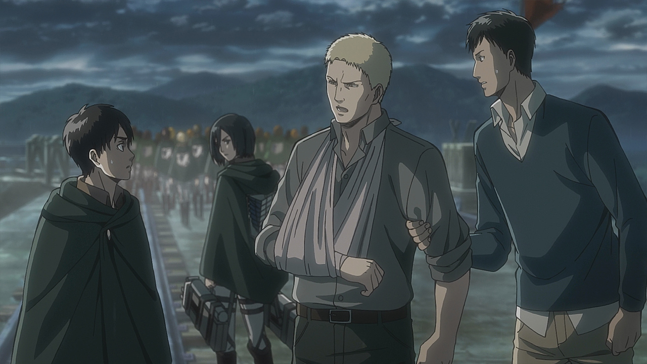 راینر و برتولت در انیمهی Attack On Titan اما پای خود را فراتر از دو آنتاگونیست منحرف و شرور میگذارند و صداگذاران این دو شخصیت نیز به نوبهی خود تاثیر زیادی در به ثمر رسیدن این امر دارند. انیمه فلشبکهای متعددی را از گذشتهی این دو نفر به نمایش در میآورد و سپس آنها را وارد یک مبارزهی روانی با خودشان میکند. جایی که این دو نفر و به ویژه راینر که زمان بیشتری در دست دارد، گذشتهاش را زیر ذرهبین میبرد و یک جنگ تمام عیار را با وجدان آسیب دیدهی خودش آغاز میکند. پیچش شخصیتی راینر و برتولت با وجود حضورشان در داستان به عنوان یک آنتاگونیست، یکی دیگر از نقطه عطفهای داستانی انیمهی Attack On Titan است که در آن پای خود را فراتر از شخصیت پردازیهای نسبتا سطحیتر مانگا میگذارد.