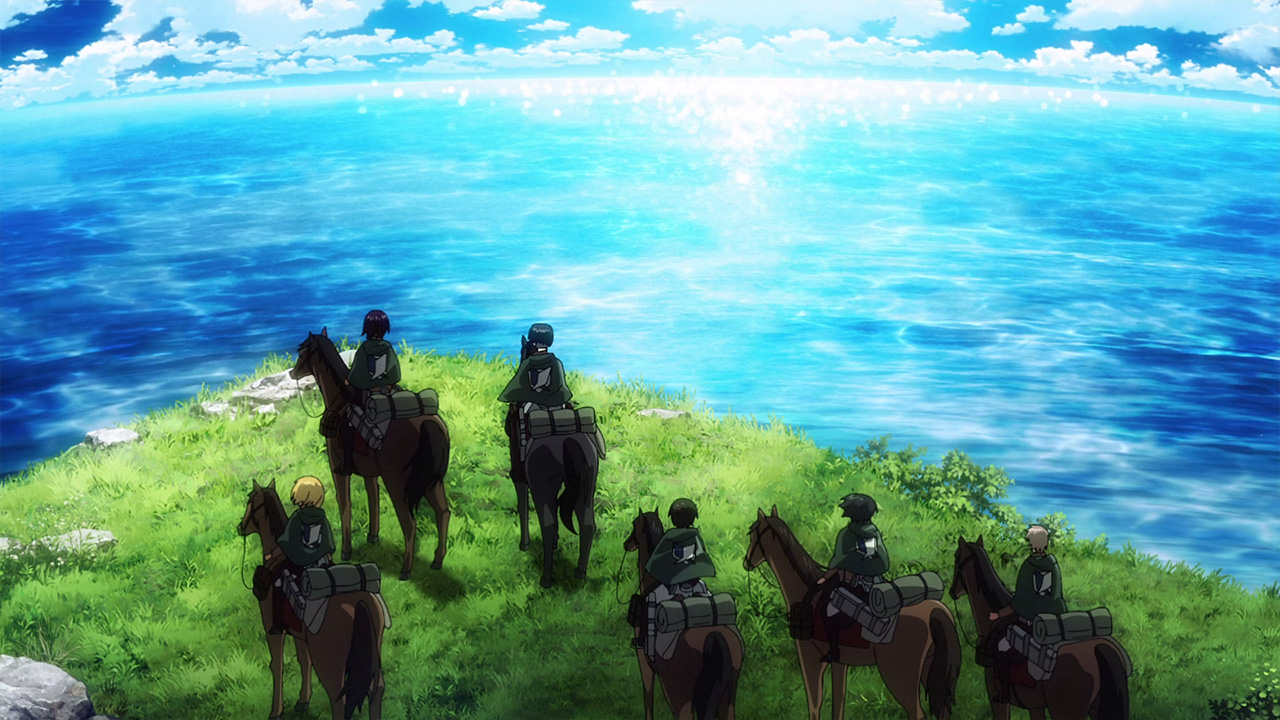 سکانس اختتامیهی فصل سوم انیمهی Attack On Titan نمایشی بود از ارن، آرمین، میکاسا و بقیهی گروه تجسس درحال درنوردیدن سرزمینهای جدید و از همه مهمتر ملاقات با اقیانوس و چشم دوختن به آنسوی آبها. این سکانس شامل لحظات بسیار عاطفی و درگیرکنندهای هم برای مخاطب و هم برای ارن و آرمین است که از کودکی رویای رسیدن به اقیانوس را در سر میپروراندند و در کنار یکدیگر فانتزی دوران کودکی خود را تحقق بخشیدند. هر قسمت از عناصر روایی – بصری انیمه در این بخش از اپیزود پایانی فصل سوم، استثنایی و متفاوت از تمامی اپیزودهای قبل از آن است و به شیوهای اقیانوس را به تصویر میکشد که جان بخشیدن به آن از طریق صفحات سیاه و سفید مانگا امکانپذیر نبود. این سکانس یکی از بهترین پایانبندیهای انیمهی Attack On Titan در طول سه فصل ابتدایی آن را رقم زد و زیباترین حسی بود که تا به حال در دنیای خشن و کابوسوارانهی Attack On Titan به جریان درآمده است.