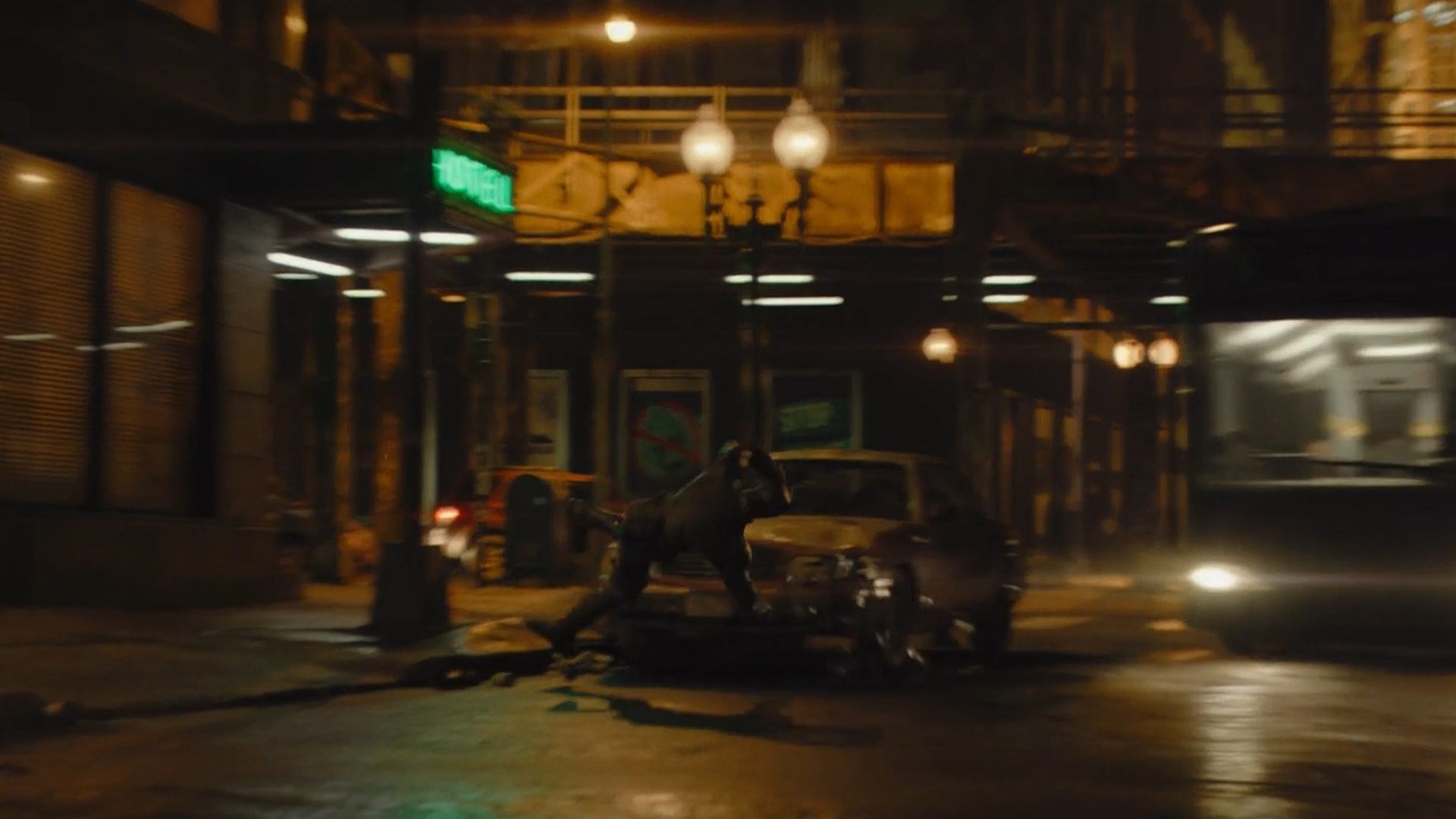 بتمن در فیلم جدید The Batman در واقع یک ابرقهرمان تازهکار است که تنها یک سال تجربه مبارزه با خلافکارها در کوچههای تاریک و خیابانهای شهر گاتهام را داشته و چندان به کار خود مسلط نیست. این نکته را میتوانید از همان صحنهای بفهمید که او از ساختمان اداره پلیس میپرد تا از دست نیروهای آن فرار کند. او روی هوا به واسطه لباس و شنلی که دارد، به اصطلاح گلاید کرده و در نهایت وقتی که به زمین رسید، سعی میکند تا با باز کردن چتر نجات، خودش را نجات دهد. اما میبینیم که باز شدن چتر عملا به مشکل میخورد و بتمن با فک روی یک خودرو کوبیده میشود.