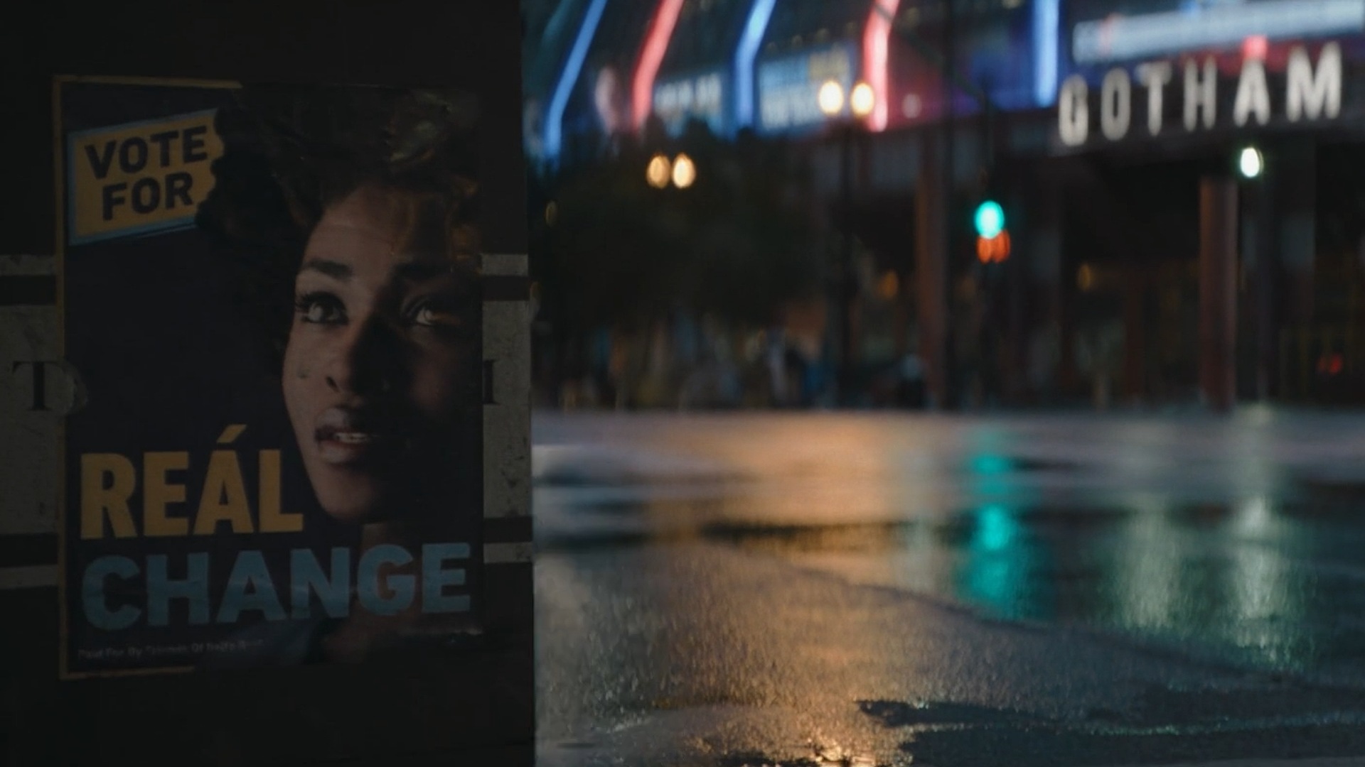 با این وجود در صحنههای ابتدایی فیلم، متوجه این موضوع میشوید که ریل به تازگی مقام شهردار را به دست آورده و پیش از آن فقط کاندید این پست بوده است. اما در همان سکانسی که بروس وین، سلینا کایل (Selina Kyle) را دنبال میکند، میتوانید جلوی در ساختمان Gotham Square Garden شاهد تبلیغات بلا ریل برای رای آوردن در انتخابات شهرداری گاتهام باشید.