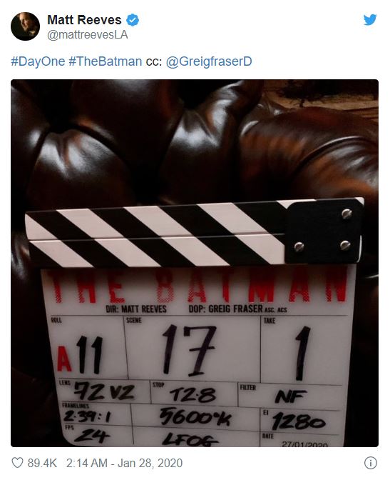 مت ریوز، کارگردان The Batman، با انتشار تصویری از طریق حساب کاربری خود در توییتر آغاز فیلمبرداری یکی از مورد انتظارترین فیلمهای سال آیندهی میلادی را تایید کرد.