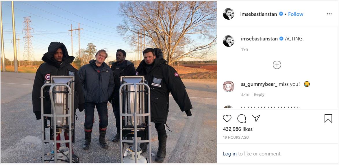 سباستین استن (Sebastian Stan) بازیگر نقش سرباز زمستان در دنیای سینمایی مارول چندی پیش تصویر جدیدی را از پشت صحنهی The Falcon and the Winter Soldier به اشتراک گذاشت. این تصویر احتمالا حضور شخصیت بتلاستار را در اولین سریال مارولی دیزنی پلاس تایید میکند. در این تصویر استن، آنتونی مکی (Anthony Mackie) و وایت راسل را به همراه یک بازیگر ناشناخته میبینیم که روی لباس مخصوص ابرقهرمانیشان یک کاپشن پوشیدهاند تا گرم شوند. استن، مکی و راسل زیپ کاپشنهای خود را بستهاند و در نتیجه، نمیتوان نگاه دقیقی به لباس آنها داشت اما بازیگر ناشناخته زیپ کاپشن را نبسته است.