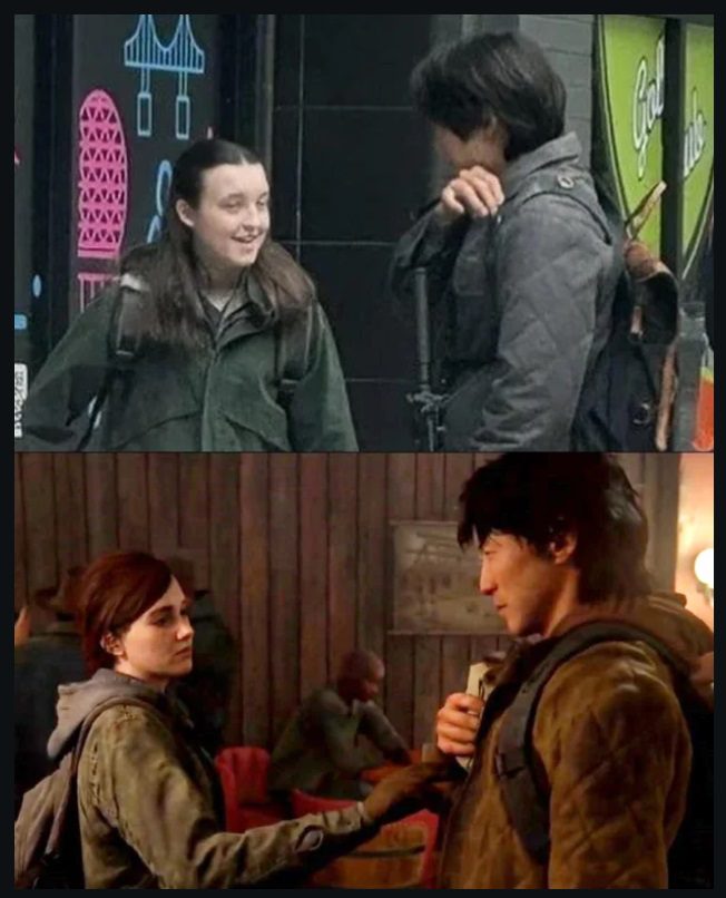 این تصویر که توسط یکی از کاربران وبسایت ردیت منتشر شده، بلا رمزی (Bella Ramsey) و یانگ میزینو (Young Mazino) را در حال صحبت با یکدیگر در خیابان به نمایش میگذارد. همانطور که میدانید بلا رمزی وظیفه نقش آفرینی شخصیت الی و یانگ میزینو وظیفه نقش آفرینی شخصیت جسی را برعهده دارند. اگر فصل دوم این اقتباس تلویزیونی به صورت جزئی به خط داستانی بازی دوم وفادار مانده باشد، این تصویر جدید سیزن دوم لست آو آس بخشهای مهمی از مرحله روز سوم سیاتل بازی The Last of Us Part 2 را به نمایش میگذارد.