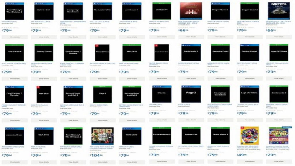 این مورد یکی از گستردهترین و البته عجیبترین لیکهای تاریخ صنعت بازی است. درست پیش از شروع رویداد E3 2018، شعبه کانادای فروشگاه زنجیرهای والمارت فهرستی طولانی از بازیهای منتشرنشده در وبسایت خود قرار داد که بسیاری از آنها حتی معرفی نشده بودند! غیر از عناوین معرفیشدهای چون NBA2K19، The Division 2 و Odyssey (که پیشتر بهلطف جاکلیدیها لو رفته بود)، بازیهای کاملاً دستهاولی مانند Forza Horizon 4 (که به اشتباه در این فهرست عدد ۵ دارد)، Lego DC Supervillains و Rage 2 توسط این فهرست لیک شدند. حتی بازی Borderlands 3 که معرفی آن پس از ۷ سال از گذشت نسخه دوم یک غافلگیری بود نیز در این فهرست قرار داشت!