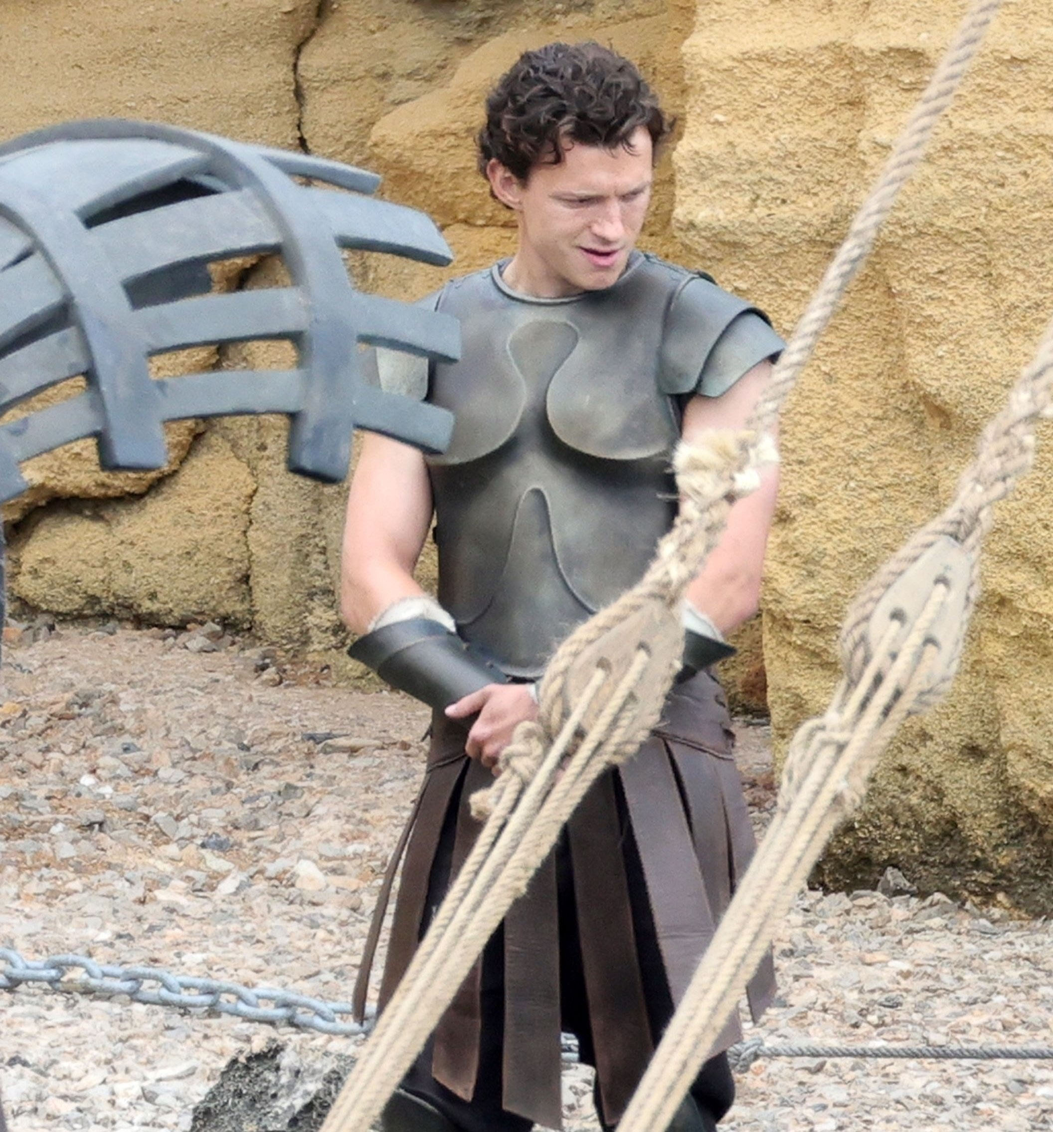 تصاویر پشت صحنه The Odyssey که تعدادشان به رقم ۴ رسیده و در کشور ایتالیا ثبت شدهاند، تام هالند را آماده نبرد نشان میدهند.