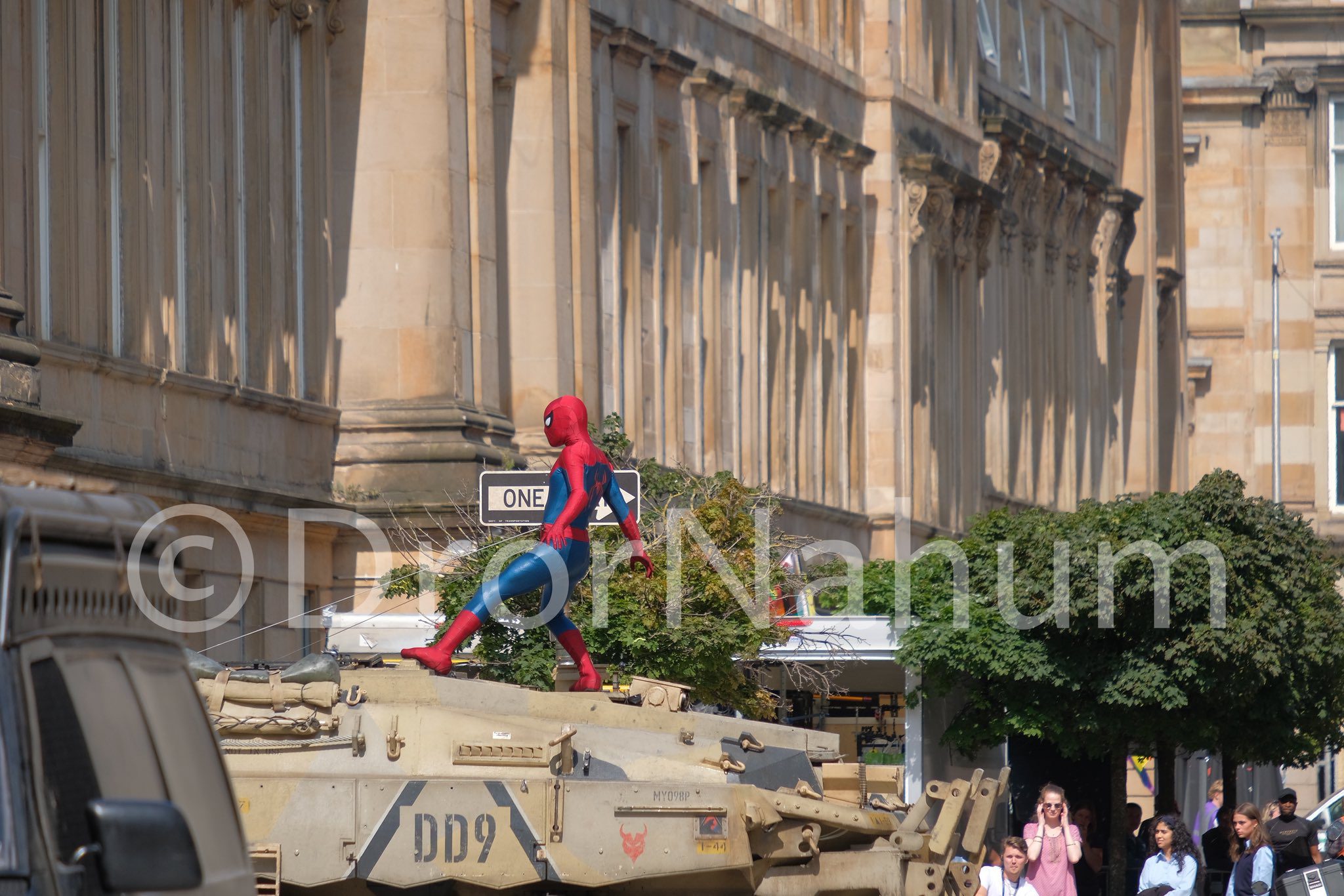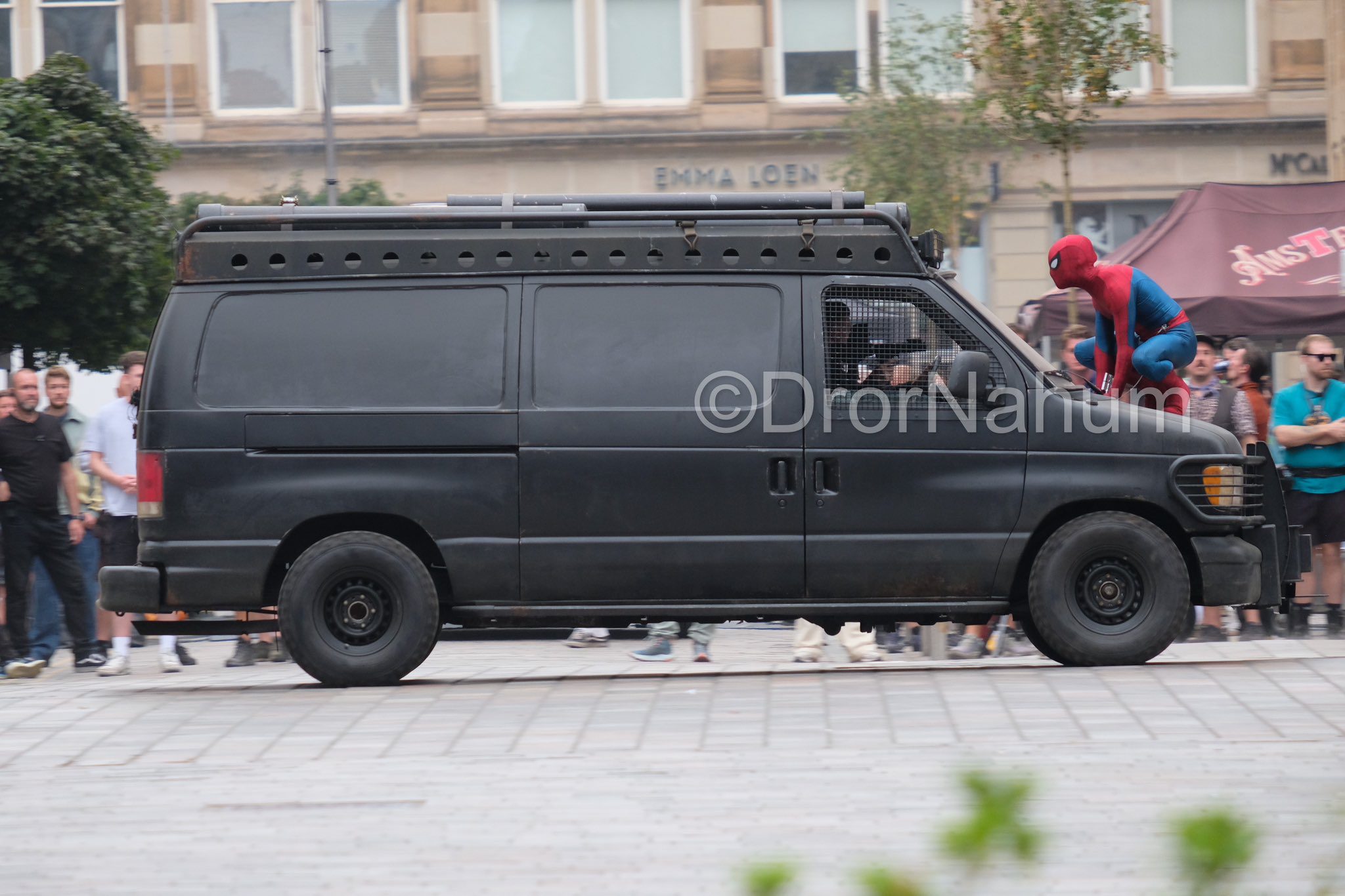 روند فیلمبرداری فیلم سینمایی Spider-Man: Brand New Day در گلاسکو در اسکاتلند به پایان رسید و اکنون باز هم تصاویر جدیدی از پشت صحنه آن منتشر شده و اسپایدرمن را در حالات مختلف از جمله رویارویی بین او و پانیشر را به تصویر میکشد. در یکی از تصاویر، دوست عنکبوتی محبوب محله روی کاپوت ون جنگی مشکیرنگ پانیشر به چشم میخورد آن هم در حالی که در نمایی نزدیکتر مشخص میشود فرانک کسل اسلحه خود را به سوی پیتر پارکر نشانه رفته است.