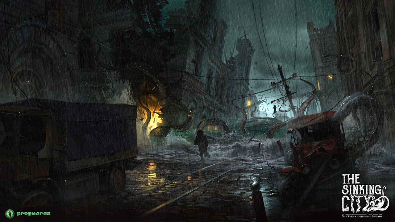 بازی The Sinking City اثری با المانهای یک بازی جهان باز است که با نگاهی روانشناسانه ساخته شده و که داستان آن، برگرفته از کارهای اچ.پی.لاوکرفت (هوارد فیلیپس لاوکرفت)، یکی از مشهورترین نویسندههای داستانهای ترسناک است.