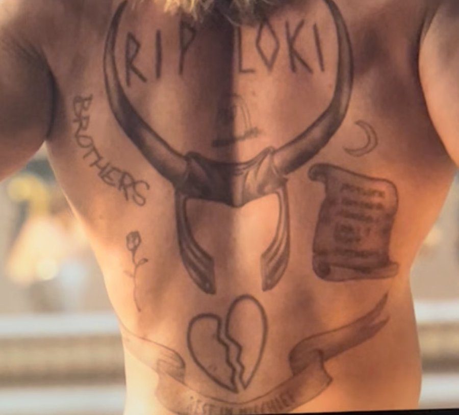 در خلال فیلم، ثور، جین و والکری به Omnipotence City سفر میکنند تا دیگر خدایان را برای جنگ علیه گور با یکدیگر متحد کنند. اگرچه در ابتدا سه نفر بهصورت ناشناس وارد شهر میشوند، اما زئوس از وجود ثور آگاه شده و حضورش را آشکار میکند. در همین صحنه پشت ثور را میبینیم که با تتوهای متعدد پوشیده شده است. علاوه بر لیستی از نامهایی که عزیزان از دسترفته ثور را یادآوری میکنند، موردتوجهترین تتوهای خدای رعد طرحی از کلاهخود لوکی و عبارتهای RIP Loki، brothers و rest in mischief هستند. طرفدارانی که Love and Thunder دیدهاند، واکنشهای جالب و متعددی نسبت به ایستراگ فیلم ثور ۴ درباره کاراکتر لوکی در فضای مجازی منتشر کردهاند.
