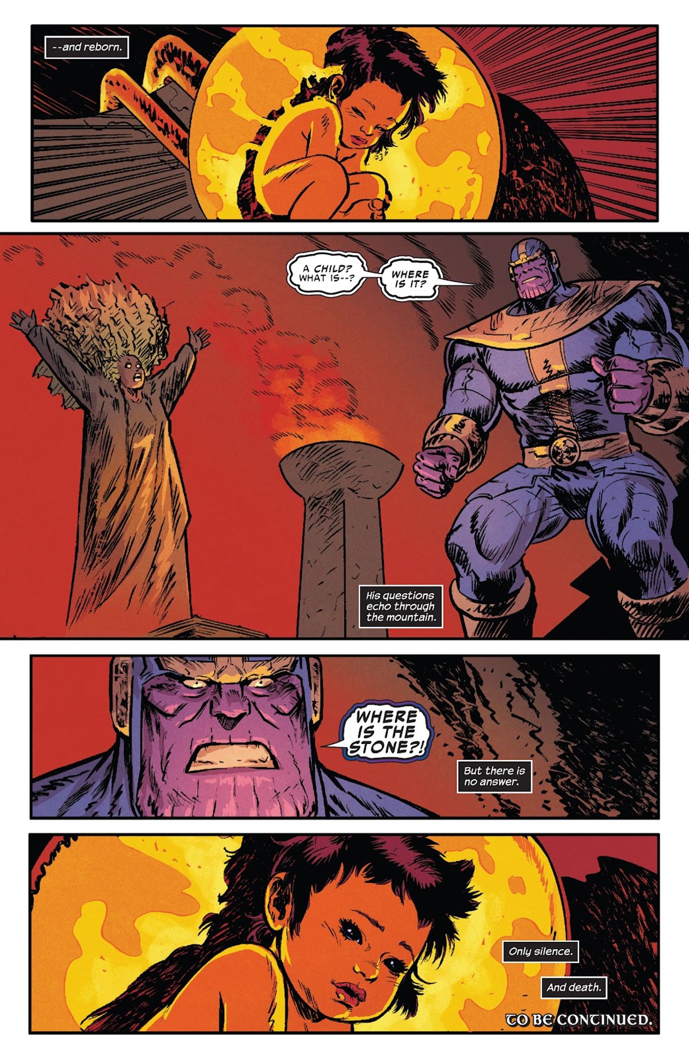 سنگ سیاه در اصل توسط بور (Bor)، پدر اودین (Odin) و از روح ازگاردیان مرده در ساخت این سنگ و به عنوان یک سوخت ساخته شد. وقتی تانوس به دنبال سنگ سیاه به محل ساخت این منبع قدرتمند میرود، سنگ را در میان جادوگران اودین نمییابد، بلکه نوزادی با چشمهایی کاملا مشکی و موهای پرکلاغی که احتمالا هلا باشد را میبیند. این نظریه، در شماره ۳۵ تایید شد و حضور هلا در این داستان و دزدیده شدنش توسط دکتر دوم به نظر میرسد که به تلاش دکتر دوم برای ساخت سنگ ابدیت مرگ با استفاده از قلمرو مردگان هلا، یعنی Hel مرتبط باشد.