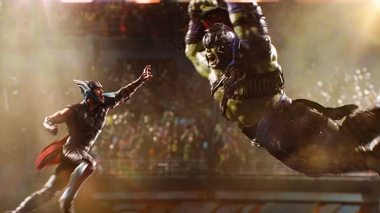 دوستی و رقابت میان ثور و هالک (Mark Ruffalo) از همان اولین رویارویی در The Avengers آغاز شد، اما نبرد دوم آنها در Thor: Ragnarok به سطحی کاملاً متفاوت رسید. زمانی که ثور وارد میدان گلادیاتوری سیاره ساکار میشود، تماشاگران با هیجان منتظر بودند تا قهرمان ناشناخته مقابل او آشکار شود. وقتی ناگهان هالک از دروازه وارد میشود، لحظهای خندهدار و در عین حال پرشکوه شکل میگیرد. واکنش بامزه ثور که او را «یک دوست از محل کار» معرفی میکند، ترکیب بینظیری از طنز و شکوه را میسازد.