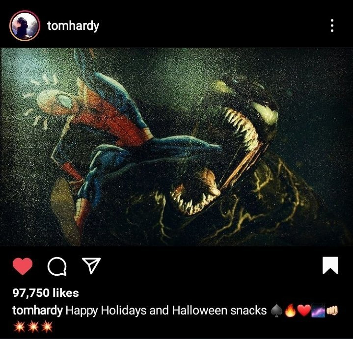 تام هاردی (Tom Hardy) بازیگر Venom 2 است. او چندی پیش آرتورکی را در اکانت اینستاگرام خود منتشر کرد که تقابل ونوم و مرد عنکبوتی را به تصویر میکشد. بازیگر بریتانیایی بنا به دلایلی مجبور شد پست مورد نظر را تنها چند دقیقه بعد پاک کند. با این حال، کاربران توانستند عکسی از آن تهیه کرده و در شبکههای اجتماعی به اشتراک بگذارند. هاردی آرتورک را به مناسبت هالووین منتشر کرده بود اما با توجه به آنچه در انتهای Venom: Let There Be Carnage رخ داد، طرفداران مطمئن هستند اقدام او زمینهچینی برای حضور ادی براک در Spider-Man: No Way Home است. در ادامه میتوانید تصویر پست را مشاهده کنید: