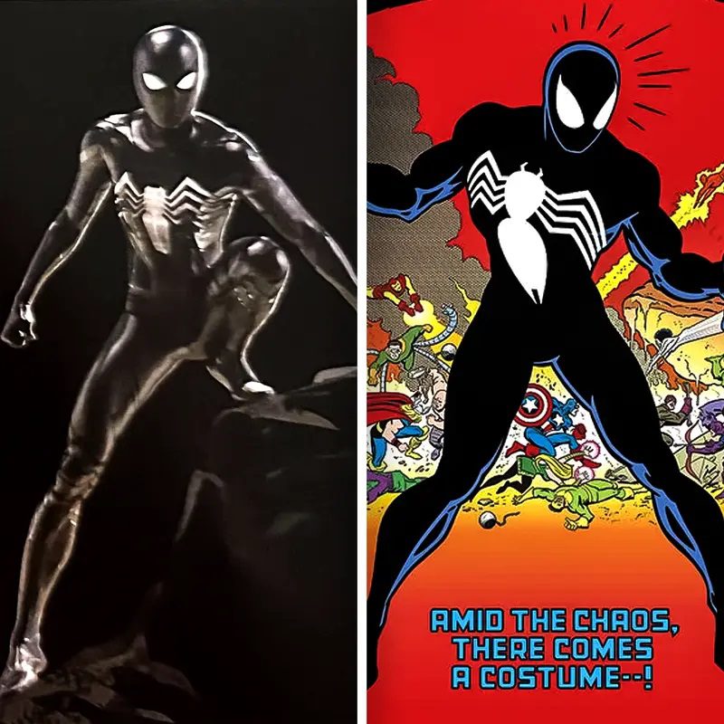 این تصاویر در آرت بوک The Spider-Man: No Way Home – The Art of the Movie که به تازگی در سراسر جهان منتشر شده، توسط طرفداران دیده شده است. این تصاویر لباس سیاه اسپایدرمن با بازی تام هالند (Tom Holland) را نشان میدهد که یک لوگوی سفید سیمبیوتمانند روی سینه آن قرار دارد. البته این احتمال وجود دارد که طراحان این لباس در اصل قصد طراحی لباس سیمبیوتی نداشتهاند و فقط میخواستند لباسی را بر اسپایدرمن بپوشانند که شباهتهایی به لباس سیمبیوتی داشته باشد. شما در زیر میتوانید تصویر اول را مشاهده کنید: