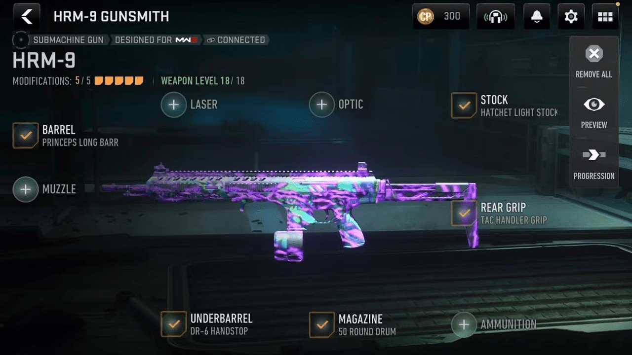 سلاح HRM-9 نرخ آتش بالایی داشته و برای مکانهای تنگ و کوچک مناسب است؛ زیرا در مکانهای این چنینی احتمال مواجهه با دشمن بالا بوده و به همین دلیل، سلاحهایی را میطلبد که به محض لمس کردن دکمه، شروع به شلیک کنند. این مسلسل دستی همچنین لگد کمدی داشته و به راحت قابل کنترل بوده و میتوان با استفاده از آن شلیکهای دقیقی انجام داد. از دیگر ویژگیهای مسلسلهای دستی میتوان به وزن کمشان اشاره کرد؛ ویژگیای که در سلاح HRM-9 هم دیده میشود. به همین دلیل، مانوردهی بالایی را به گیمر میدهد تا به راحتی بتواند در محیط نبرد جابجا شود.