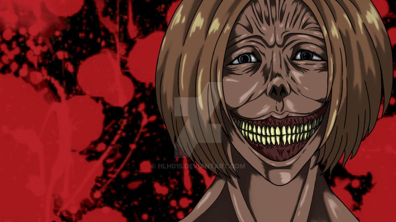 یکی از تایتانهایی که در خط داستانی انیمه Attack on Titan نقش کلیدی را ایفا میکند، تایتان لبخند (The Smiling Titan) میباشد. این کارکتر به عنوان یکی دیگر از زشت ترین شخصیت های انیمه ای ساخته شده در تمام دورانها شناخته شده است. ظاهر تایتان لبخند به گونهای طراحی شده است که با صورتی خندان به افرادی نگاه میکند که قصد گرفتن جانشان را دارد و به همین خاطر نیز، در میان طرفداران این انیمه، به عنوان یکی از منفورترین کارکترها شناخته شده است. انیمه حمله به تایتان/تایتان مهاجم به دلیل خط داستانی بسیار هیجانانگیز که در آن به مضامین عمیقی سیاسی پرداخته است، پیچشهای داستانی، جلوههای بصری و همچنین موسیقیهای نمادین متن خود، موفق شد به موفقیتهای بیسابقهای دست پیدا کند.