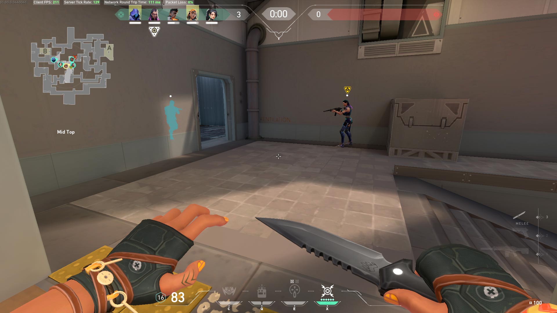 اشکال بعدی بازی Valorant وجود باگهای مختلفی است که بیشتر در رابط کاربری و انیمیشنها میبینیم. رابط کاربری بازی طراحی بسیار خوبی دارد و هر اطلاعاتی را که نیاز داشته باشید، بهراحتی در اختیارتان قرار میدهد ولی چند بار برای من پیش آمد که با شروع یک مسابقه رابط کاربری ناپدید میشد و تنها راه حل، یک بار خروج و ورود از بازی بود. خوشبختانه وقتی وسط یک مسابقه از بازی خارج میشوید، اندک زمانی فرصت خواهید داشت تا دوباره به آن برگردید. یکسری باگ و لگ در انیمیشن سلاحها و شخصیتها مشاهده میشود که البته ممکن است بهخاطر نوسانات اینترنت در ایران هم باشد.