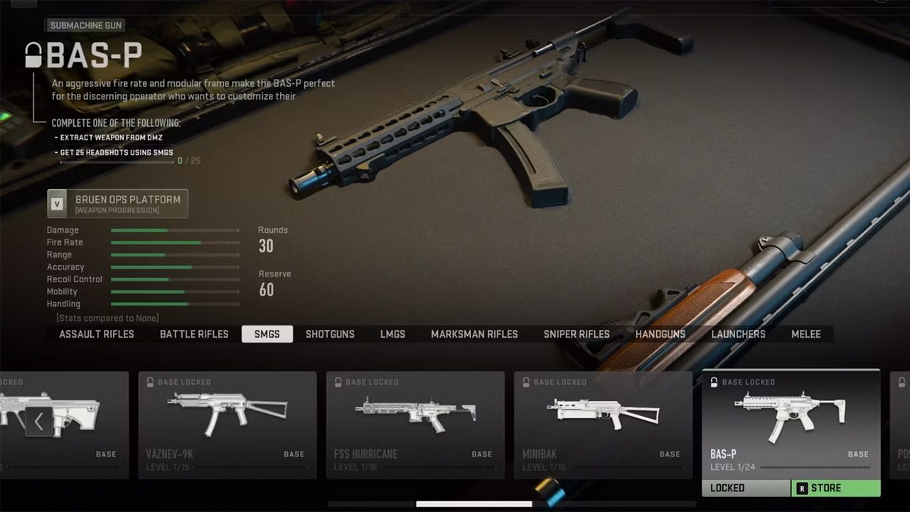 تفنگ BAS-P یکی از دقیقترین تفنگهای بازی است! اما نباید فراموش کرد که ضرب گلولههای این تفنگ، و البته برد آن بسیار کم هستند. سرعت شلیک گلولهها ولی در آن بسیار بالا بوده که باعث میشود خشاب آن در کسری از ثانیه خالی شود. نسخه اصلی این تفنگ خشابی ۳۰ گلولهای داشته که میتواند مبارزات شما را تبدیل به جهنم کند. در نتیجه پیش از هر چیز خشاب ۵۰ گلولهای را برای این تفنگ انتخاب کنید تا مبارزات طولانی مدت را به سادگی پشت سر بگذارید.