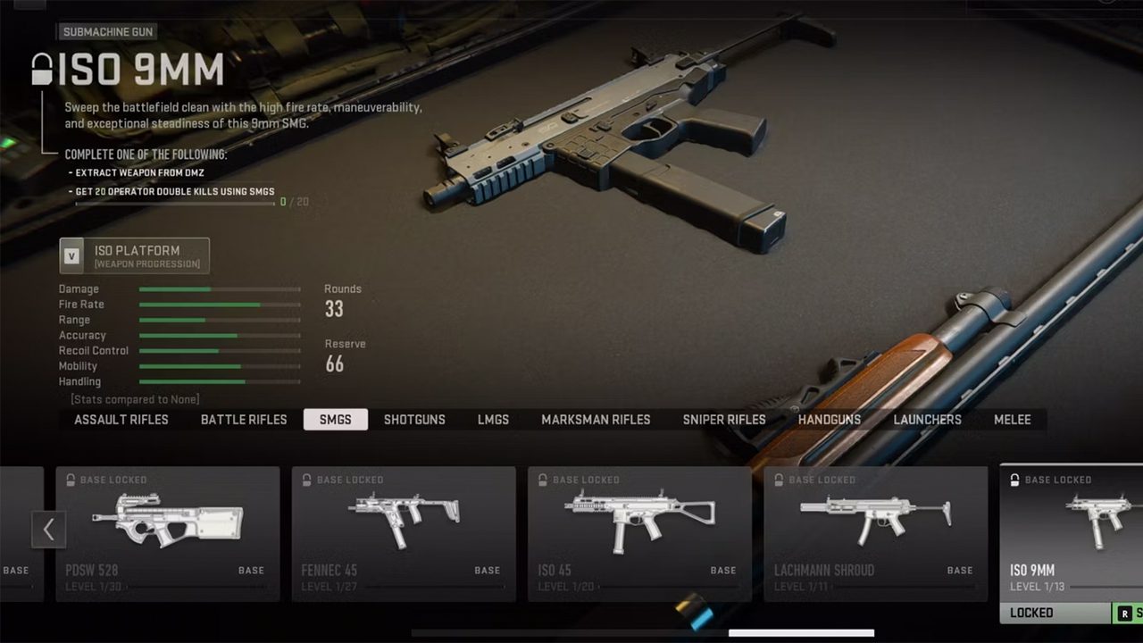 تفنگ ISO 9MM یادآور تفنگهای دوست داشتنی و معروف UZI و MAC-10 است. این دست از تفنگها با مقیاس کوچک مختص دفاع شخصی و مبارزات با فاصله بسیار نزدیک هستند. این تفنگ را بیشتر میتوان پیستولی اتوماتیک تا SMG کامل دانست. ضرب گلولههای این سلاح بسیار کم بوده، اما کشندگی آن با سرعت شلیک بی نظیرش افزایش پیدا میکند. همچنین وزن بسیار پایین آن، این تفنگ را تبدیل به قاتلی خون سرد در فاصله نزدیک کرده است.