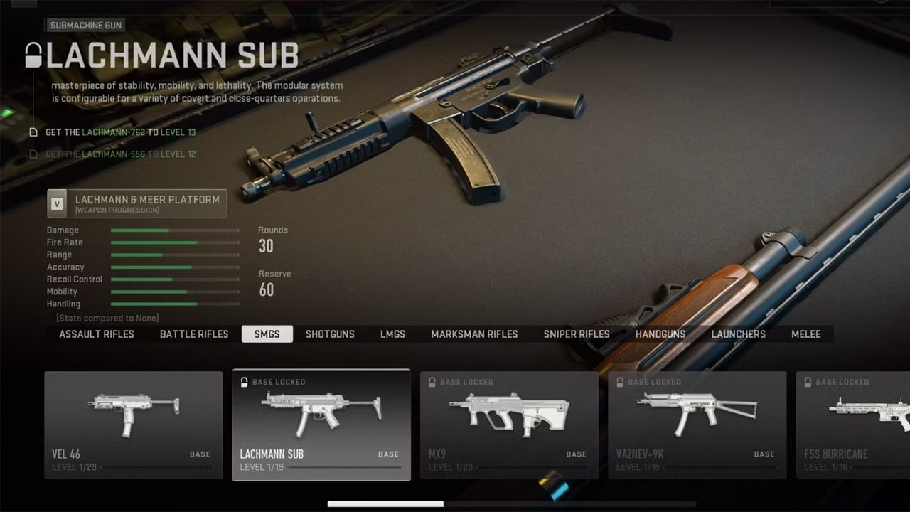تفنگ Lachmann Sub نمود یکی از محبوبترین تفنگهای SMG تاریخ یعنی تفنگ MP5 است. این سلاح، سلاحی سبک، دقیق و پر قدرت بوده که میتواند هر کسی را پیروز مبارزه است. این سلاح از معدود سلاحهای این کلاس بوده که در مبارزات با فاصله متوسط نیز کشنده است. اما فراموش نکنید که این سلاح با وجود وزن کم، از همتایان خود مقداری سنگینتر بوده که باعث میشود بخواهید با حواس جمعتر از آن استفاده کنید.