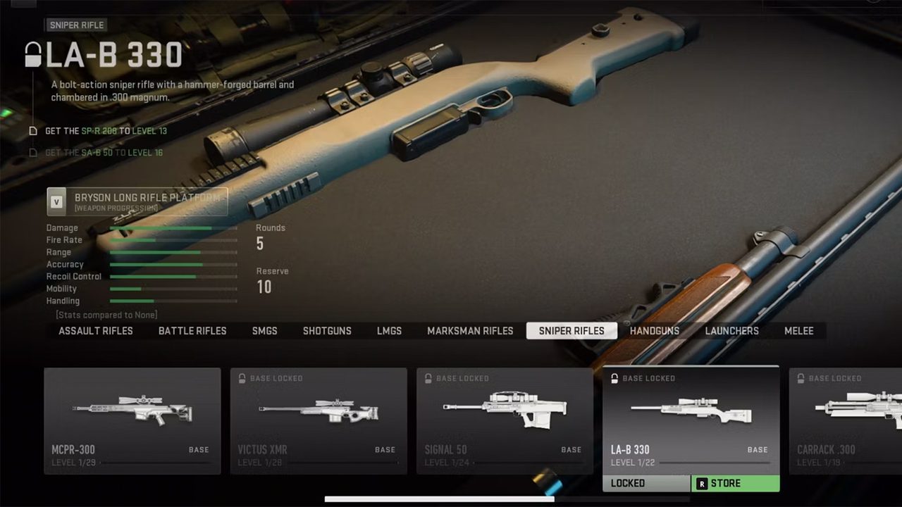 تفنگ جذاب LA-B 330 به وضوح از تفگ M40 الهام گرفته است. این سلاح تک تیراندازی ساده، اما قدرتمند است. ضربات این سلاح طبق انتظار سنگین بوده، با این حال به دلیل استفاده از مکانیسم بولت اکشن، سرعت شلیک بسیار کمی داشته و شلیک خطا میتواند به معنی از دست دادن فرصت باشد! دیگر نکات آزار دهنده آن خشاب کوچک پنج گلولهای و وزن فوق العاده بالای آن هستند!