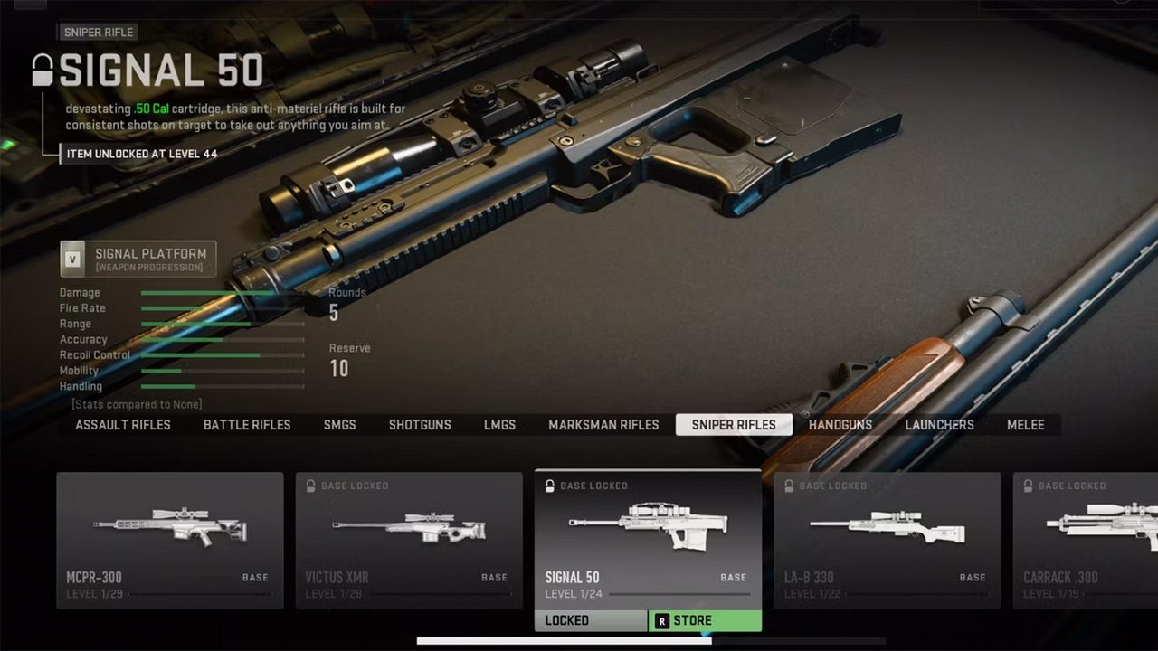 تفنگ پرقدرت با لگد کاملا قابل کنترل، Signal 50 با یک گلوله دشمن شما را ساقط میکند. این تفنگ از ساختار بول پاپ بهره برده و همین موضوع سبب کاهش وزن و قابلیت کنترل لگد بهتر در آن شده است. اما فراموش نکنید که این تفنگ برای مبارزات بسیار دور چندان ایدهآل نیست. موضوع دیگر که این تفنگ را مقداری آزار دهنده کرده، خشاب پنج گلولهای آن بوده که میتواند با وزن کم و قدرت جابجایی آن تداخل ایجاد کند!