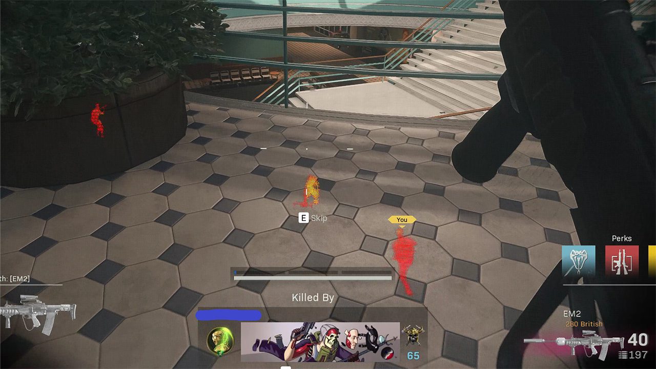 در بخش دوم ویدیو، ما این مبارزه را از دید تک مهاجم برنده میبینیم. این کاربر با استفاده از پرک Hunter، هالهای از افراد تیم مقابل را پیش از ورود به ساختمان دیده و در نتیجه با اطلاع قبلی و آگاهی کامل وارد ساختمان شده و آنها را در بازی نیست و نابود میکند. واقعیت این است که پرک Hunter شباهت بسیاری به وال هک (Wallhack) دارد که به طور رسمی از طرف تیم اکتیویژن تحریم شده است!