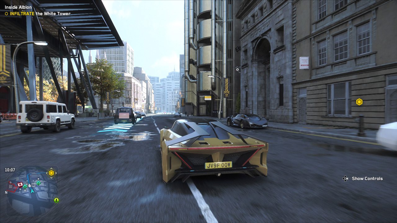 طراحی خیابانها، حتی برخی خودروهای انگلیسی و ساختمانها آیکانیک قدیمی یا جدید شهر لندن، میتواند کاری کند که به راحتی خودتان را در لندن ۲۰۳۰ میلادی تصور کنید؛ حالا افکت باران و آسفالت خیس را به همهی اینها اضافه کنید تا هنر یوبیسافت در گرافیک هنری بازی Watch Dogs Legion تجلی یابد.