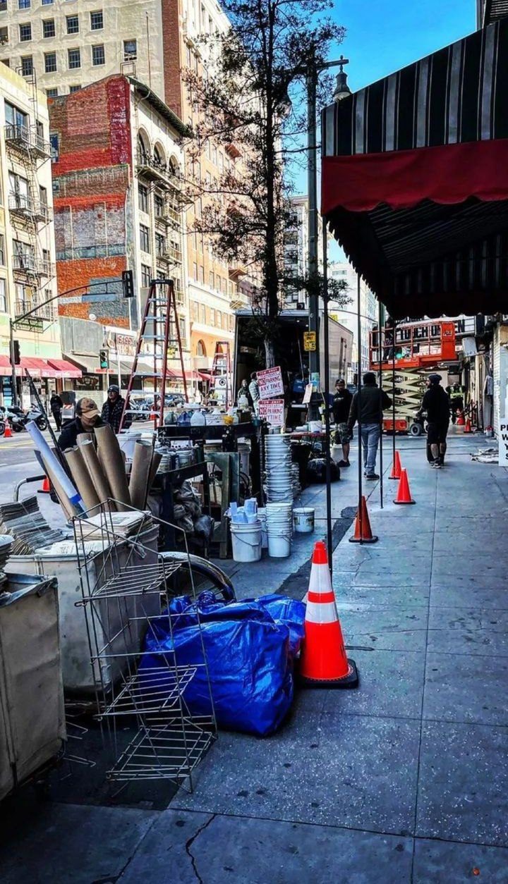 چند تصویر دیگر هم اگرچه هیچکدام از بازیگران فیلم را نشان نمیدهند، اما مکانهای گوناگون لسآنجلس و نحوه تغییر آنها برای شبیهسازی شهر گاتهام را برجسته میکنند. این عکسها مشخصا گاتهام را به نمایش میگذارند. شهری که هرچند یک مکان تخیلی محسوب میشود، اما در عین حال شباهت زیادی هم به شهر لسآنجلس دارد.